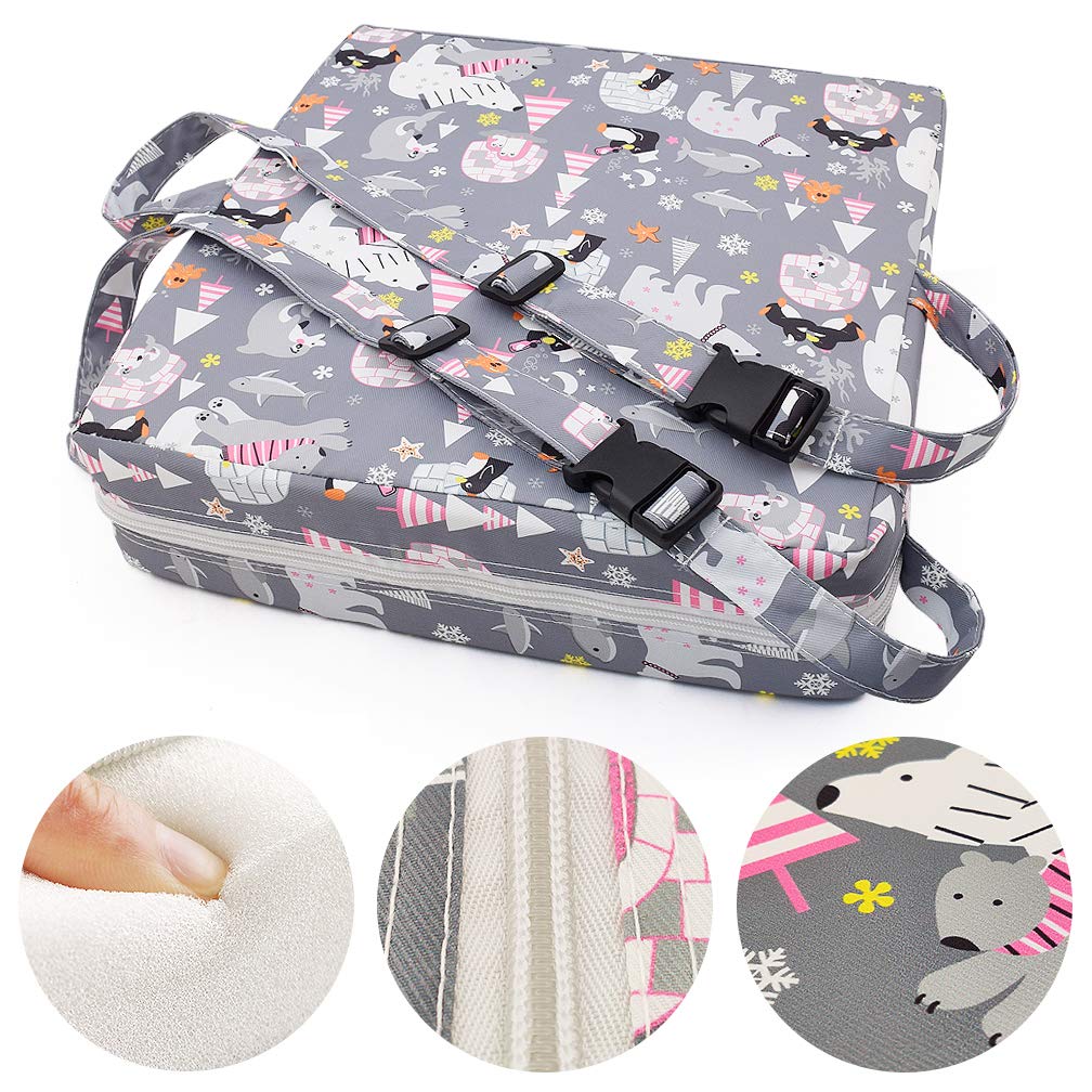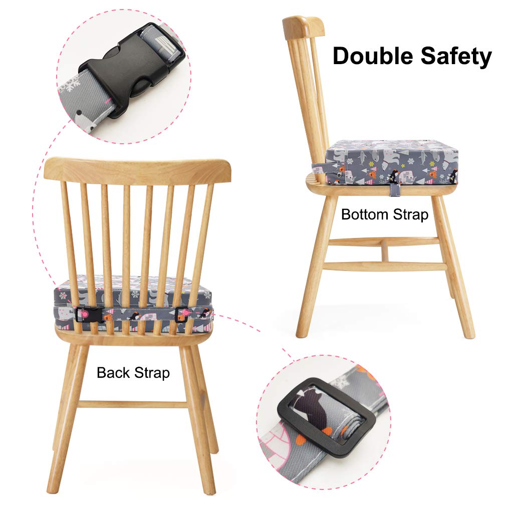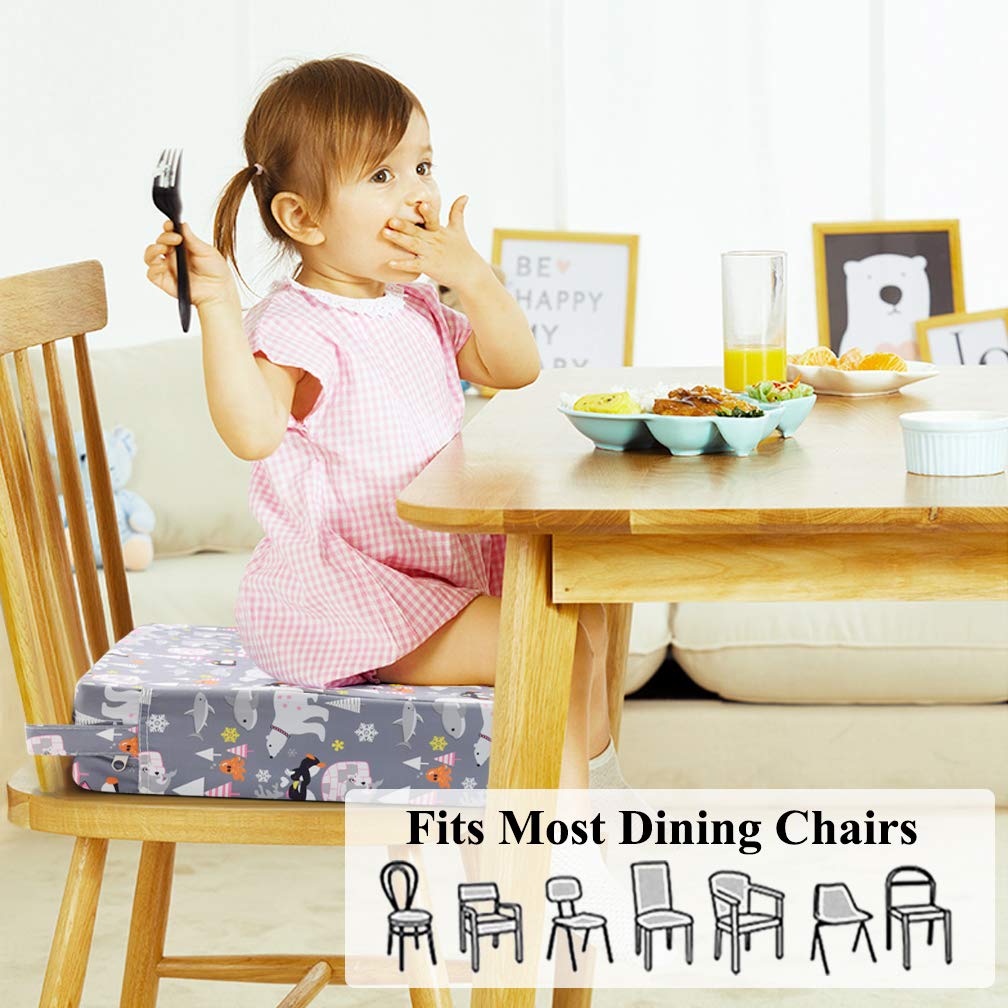 Dimensions: 12.6"L x 3.1"H x 12.6"W, fit most of dining chairs. It can be used for toddler children old who can sit unaided at a table to enjoy the meal with family together. Also can used for children writing, drawing and play toys.