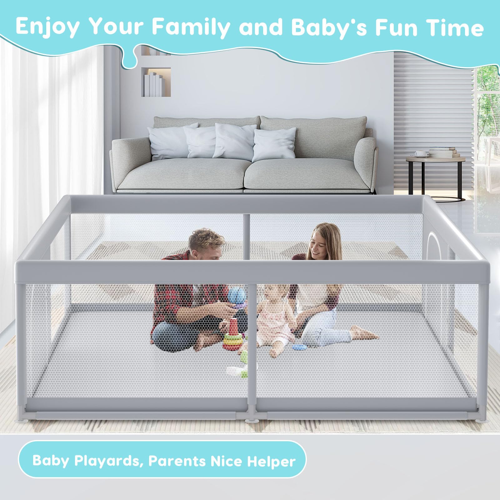 [FREE YOUR HANDS AND ENJOY YOUR TIME]Our baby playpens can provide a great safe space to prevent them from getting lost or touching dangerous areas. Parents can free up their hands to do any things, such as cooking, cleaning, reading, no longer need to be worrying about their baby's safety, and you can check the status of your baby at any time, which is perfect for busy parents who want to provide their children with a safe and entertaining place to play while they are at work or leisure.