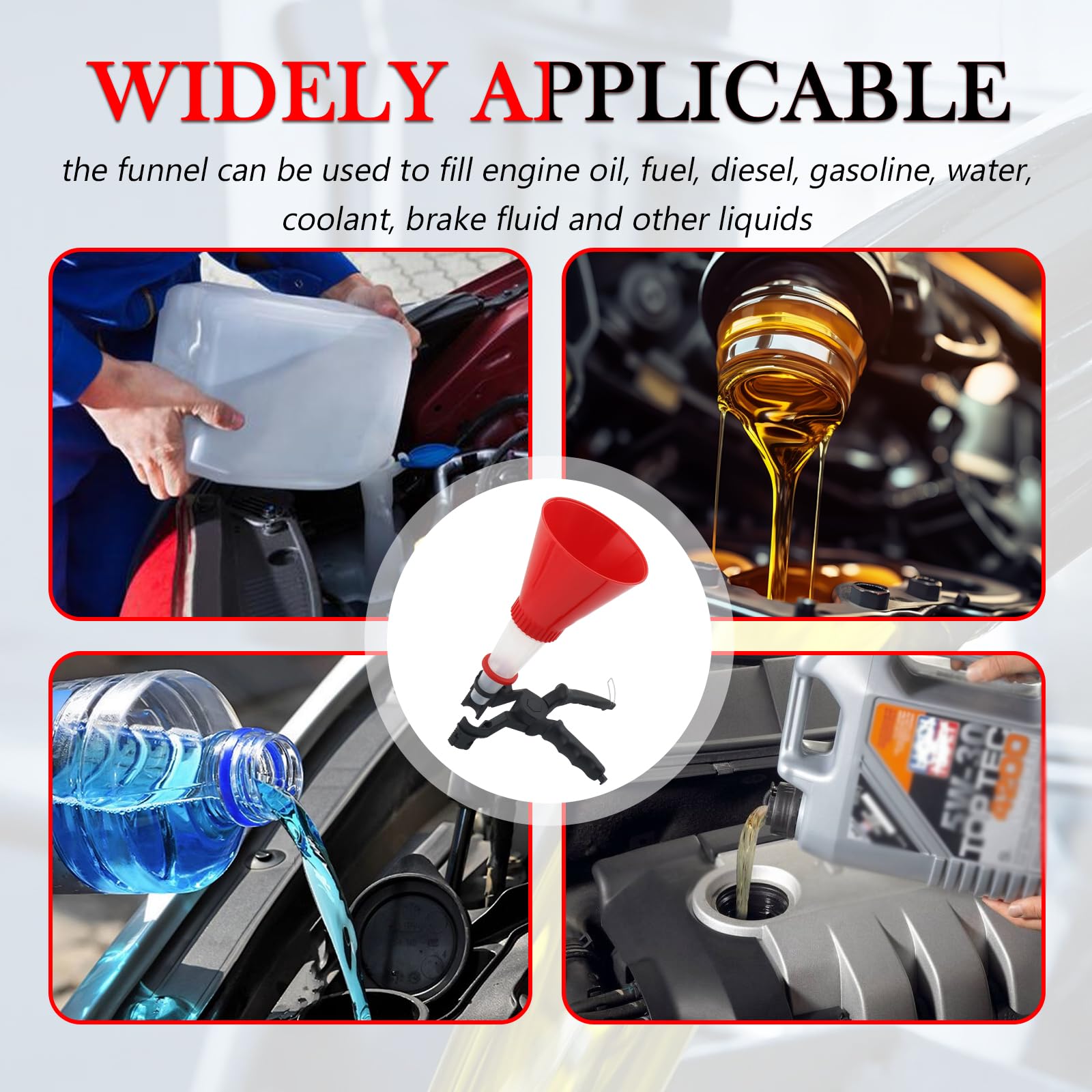 Easy Observation&Multi-Purpose: The lower chamber of our automotive funnel is transparent for easy observation of real-time oil level, and the funnel can be used to fill engine oil, fuel, diesel, gasoline, water, coolant, brake fluid and other liquids
