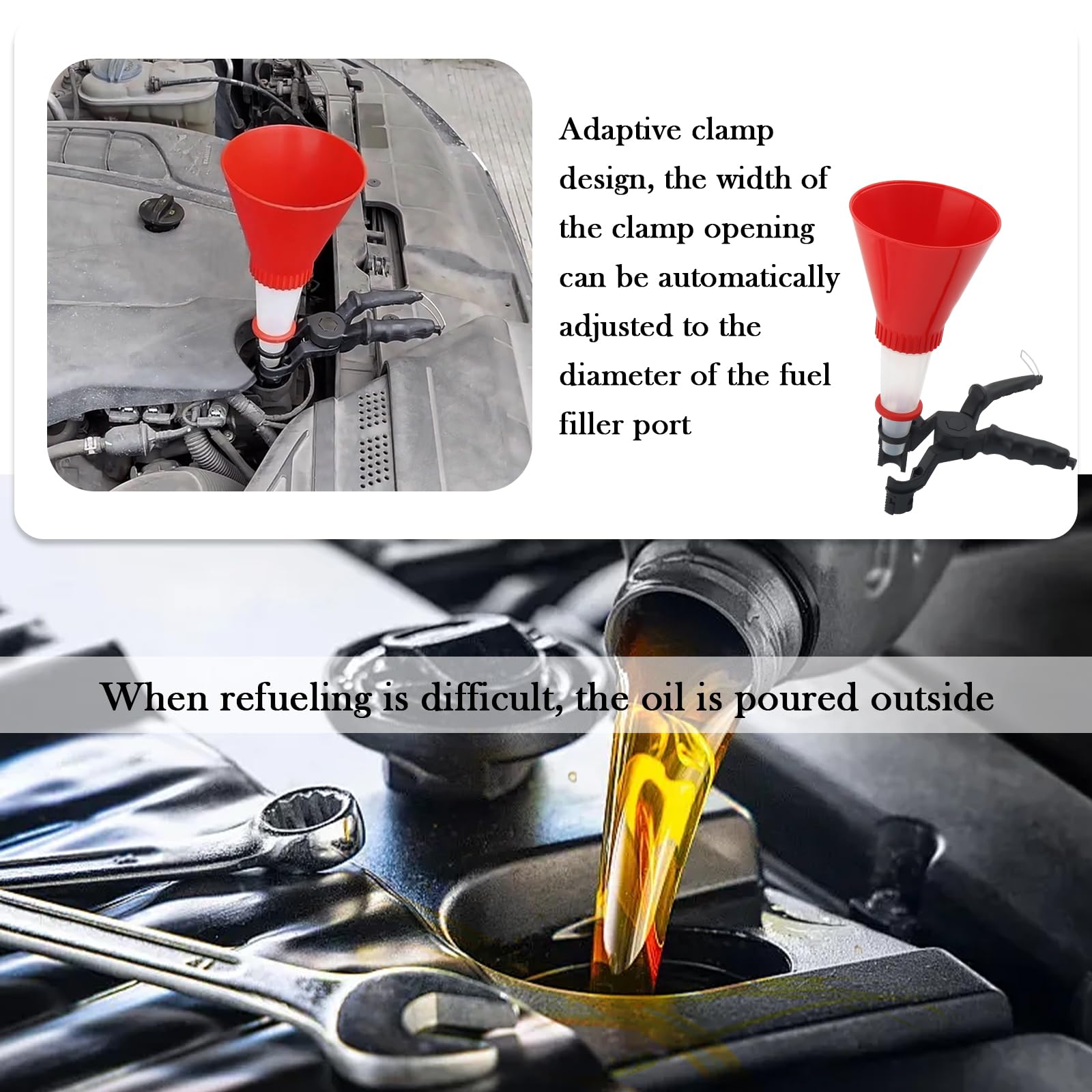 Adaptive Locking Structure: The oil funnel is designed with a locking structure, the width of the clamp opening can be automatically adjusted to the diameter of the fuel filler port after placement, avoiding oil spill caused by shaking of the funnel