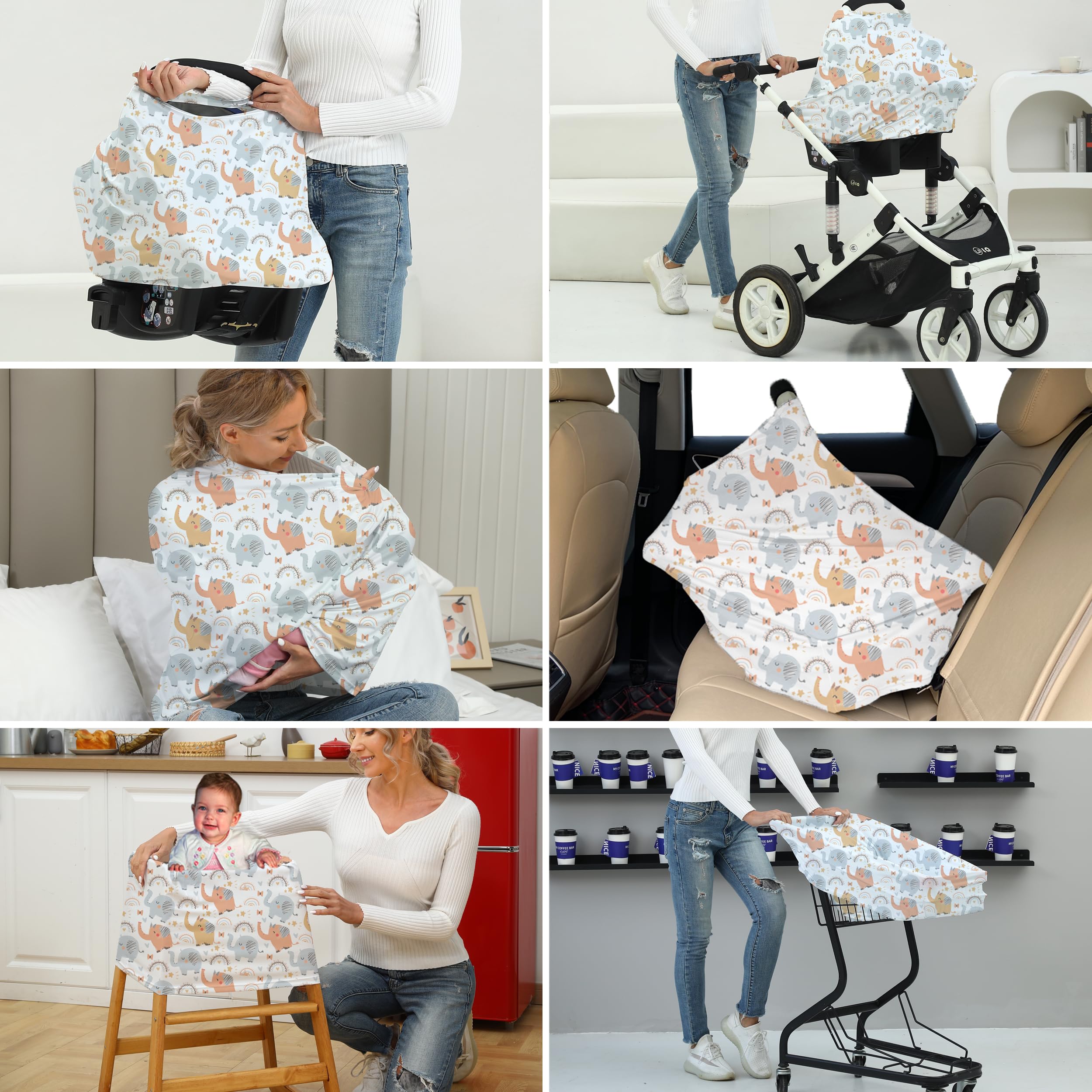 MULTIPURPOSE: Our cover with multiple functions, use as a car seat covers for babies, nursing cover for breastfeeding, carseat canopy cover, feeding high chair cover, shopping cart cover, stroller sun protection cover.