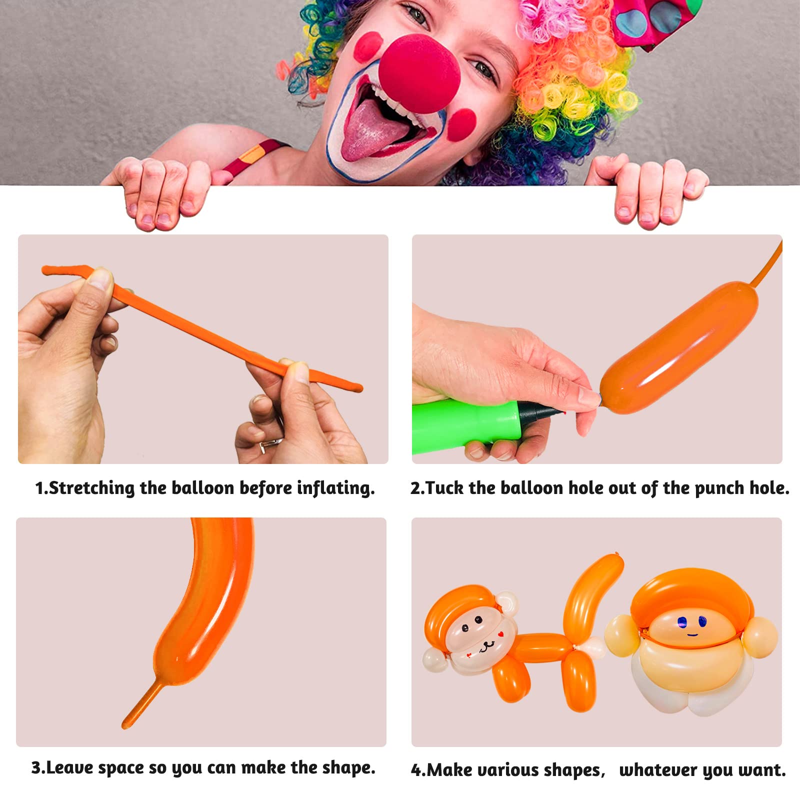 THE PACKAGE INCLUDES: 100 long balloons for balloon animals,can be shaped into any interesting sculpture or animal for professional balloon twisters and artists.