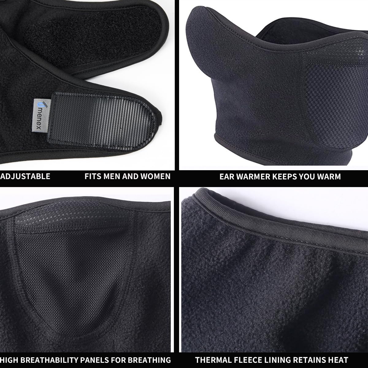 Description Omenex Half face mask, adjustable fastener,Wind-resistant earmuffs(balaclava)/winter face mask is made of Custom made Polar fleece that blocks the wind and protects the face and ear from the bite of cold weather. Custom made Polar fleece material is soft and stretch, which is windproof, breathable and thermal protection functions. This Winter masks for men womens Suitable for winter camping, hiking, hunting, ice fishing, trekking, mountaineering,running mask cold, cycling, skiing, snowboarding, motorcycling, scooter rides or when snow blowing the driveway, snow men winter face mask, working outdoors, go out in extreme cold weather or other sports and outdoor activities This Half mask winter/, is a great gift for your Winter season, a best Christmas gift,Chrestmas presents to your Friends.