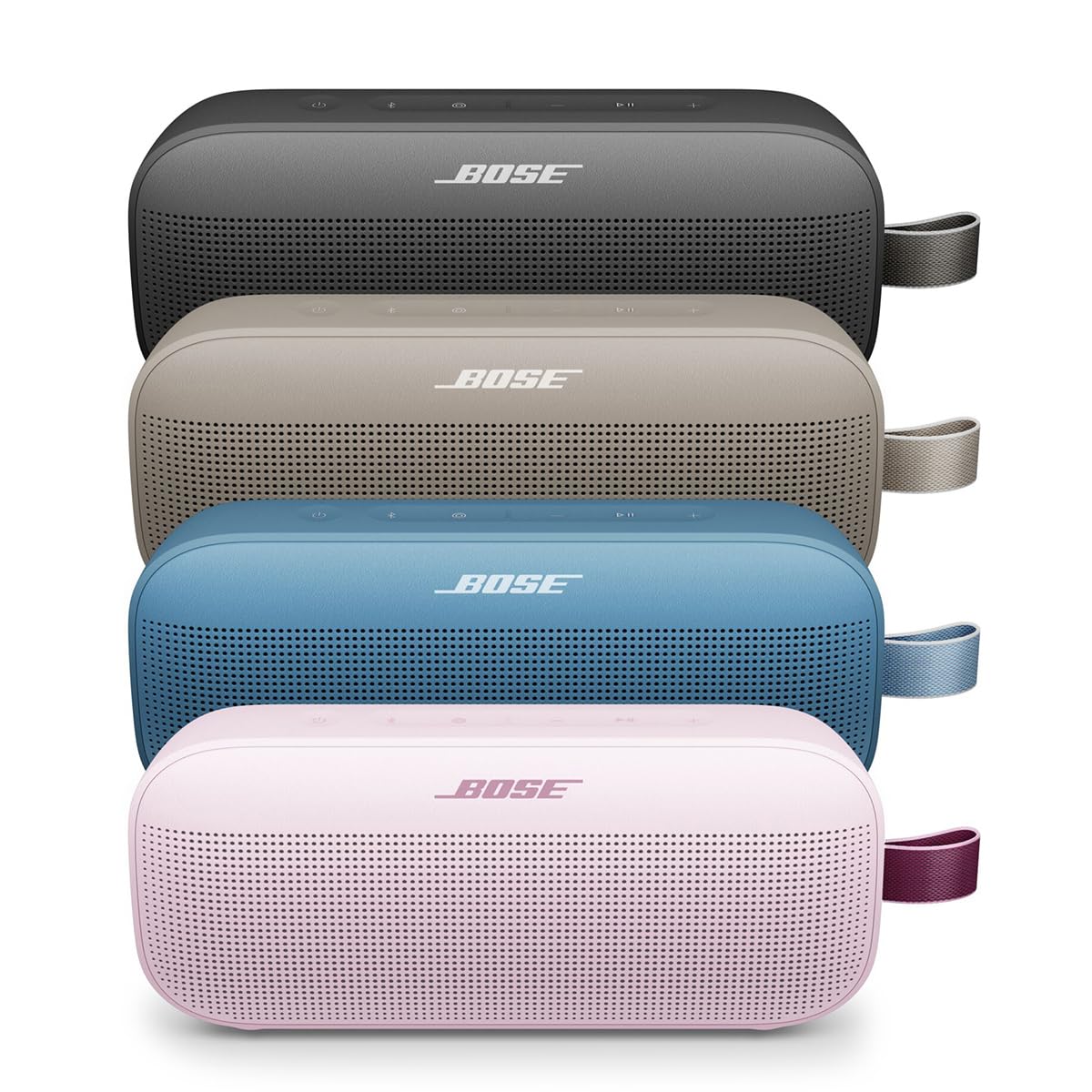 Press play and go further with the Bose SoundLink Flex Portable Speaker (2nd Gen). With surprisingly big, bold sound in a super-packable size, it's perfect for sharing tunes and good times anywhere on the planet. It's built durable, too, so you can go wherever the beat takes you. High-fidelity audio and deep bass for a speaker this size make it loud enough to fill the space wherever you are on your journey. It's perfectly portable, too. Small enough to fit in your hand, throw in your pack, or clip to the outside with the nylon sport utility loop. And you'll keep the dance party going into the night with up to 12 hours of battery life. Rigorously tested to meet an IP67 rating, SoundLink Flex is waterproof and dustproof. It even floats, so a quick dip in the pool won't sink your sound. Just grab it and get back to the fun. The speaker can also withstand drops, crushing, shocks, and rust. Music calls. Press play and go further with the Bose SoundLink Flex Portable Speaker (2nd Gen). Surprisingly big, bold sound in a super-packable size is perfect for sharing tunes and good times anywhere on the planet. It's built durable, too, so you can go wherever the beat takes you. Sound that takes you places. Hit the road in hi-fi with the surprisingly powerful performance of SoundLink Flex. It's clear, balanced, high-fidelity audio and deep bass you wouldn't expect from a speaker this easy to take with you. Want higher highs or lower lows? Tweak the sound with Adjustable EQ in the Bose app. Perfectly portable, with battery life to match. Pack your playlist - no problem. The speaker is small enough to fit in your hand, throw in your pack, or clip to the outside with the durable utility loop. And you can focus on the fun with up to 12 hours of battery life - enough for even the most adventurous of tastes. Toss it. Drop it. It's all good. Rated IP67, SoundLink Flex is designed to take on all your adventures. It's dust and waterproof, and it floats - so a quick dip in the pool won't sink your sound. The speaker's durable, silicone-wrapped body also withstands drops, crushing, shocks, and rust. Stay connected with advanced Bluetooth 5.3. Advanced Bluetooth 5.3 offers a strong, continuous connection to your device from up to 30 feet away. And multipoint connections keep the speaker paired to multiple devices at once, making it easy to share DJ duties with a friend. Stereo on the go. Amp up the adventure when you pair two compatible Bose speakers for more sound. Choose from Stereo Mode for left and right channels or Party Mode to bring even bigger and bolder sound. You don't even need the app. Just press the shortcut button on each speaker. Plays from any position. Stand it up, lay it back, hang it upside down - SoundLink Flex will always give you the best sound. Bose PositionIQ technology senses the speaker's orientation and automatically adjusts its performance accordingly. Stay in touch when you head out. Make and take calls when you're on the go with the speaker's built-in microphone. Or use it to access your device's native voice assistant when your phone is out of reach. With surprisingly big, bold sound in a super-packable size, it's perfect for sharing tunes and good times anywhere on the planet Hit the road in hi-fi with the SoundLink Flex (2nd Gen). High-fidelity audio for crisp, nuanced sound and surprisingly deep bass for a speaker this size. Loud enough to fill the space wherever you are on your journey Focus on sharing the fun with this perfectly portable speaker that's small enough to carry in your hand, toss in your pack, or clip to the outside with the durable nylon utility loop Sea. Sand. Doesn't matter. The speaker is IP67-rated so it's dust and waterproof. Even a quick dip in the pool won't sink your sound because SoundLink Flex floats Don't worry if you drop the speaker when you drop the beat. The tough, silicone-wrapped body can withstand short falls. It's also crush and rust resistant The updated SoundLink Flex is upgraded to the latest Bluetooth 5.3 connectivity, so the tunes stay strong up to 30 feet from your device. The multipoint connectivity feature allows several devices to be connected simultaneously, making it easy to share DJ duties with a friend The sound is clear and balanced out of the box, but what if you want higher highs or lower lows? Adjustable EQ in the Bose app lets you tweak the speaker's performance to your liking Amp up the adventure with more sound when you link two compatible Bose speakers. Choose Stereo Mode for left and right channels, or go for Party Mode for even bigger, bolder sound Standing on a table, laid back on the beach blanket, or hung from a backpack - SoundLink Flex always sounds its best. PositionIQ technology senses its orientation, and automatically adjusts the speaker's performance Make and take calls and access your device's native voice assistant using the speaker's built-in microphone Bose SimpleSync compatibility lets you create a multiroom experi