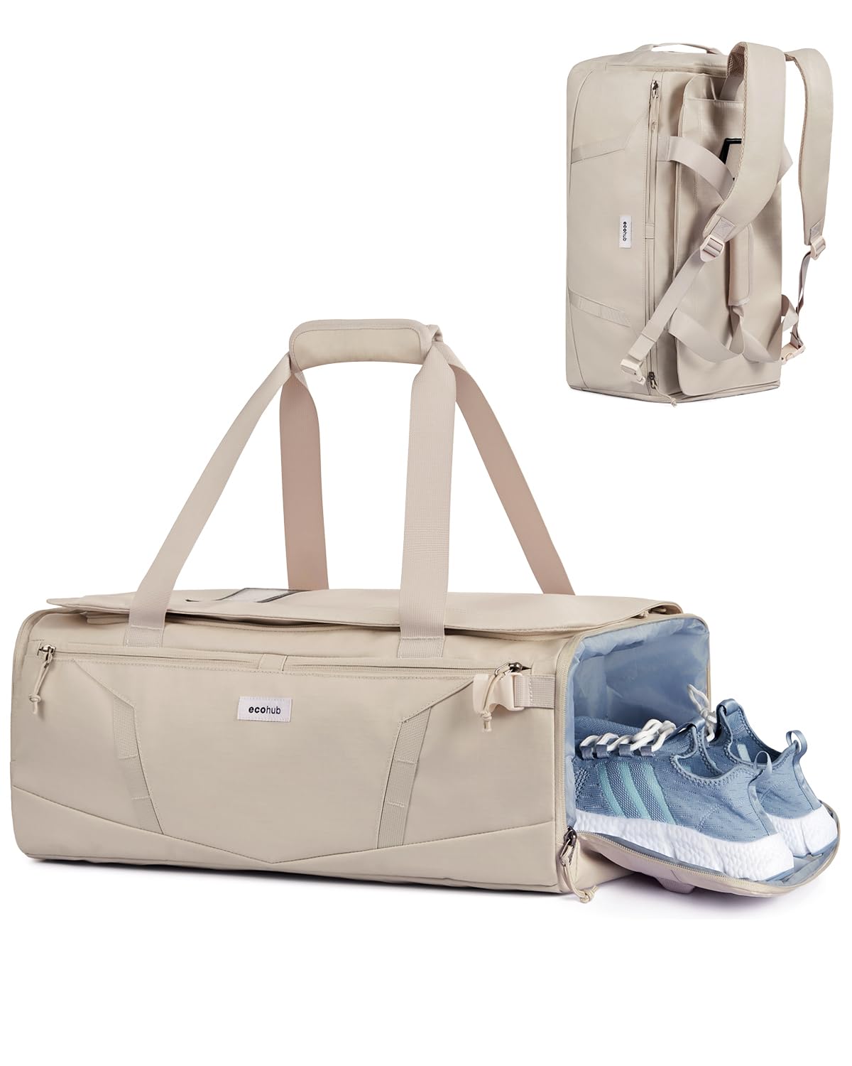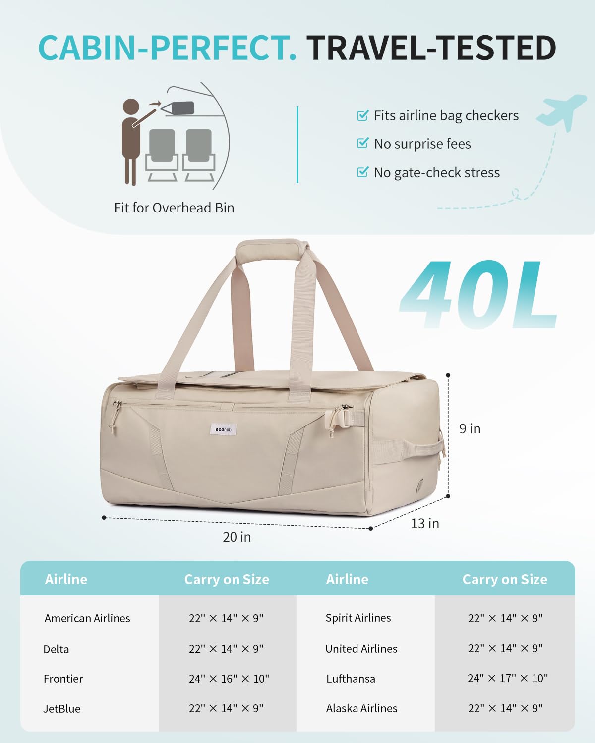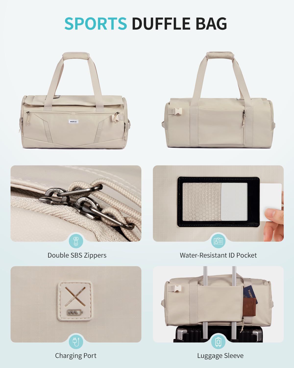 【Spacious & Organized】 40L large capacity with multiple compartments. Dedicated ventilated shoe compartment keeps your sneakers or dirty gear apart from clean clothes, making post-gym packing more hygienic. Built-in waterproof wet pocket holds damp towels or swimwear, while multiple interior and exterior pockets keep essentials organized.