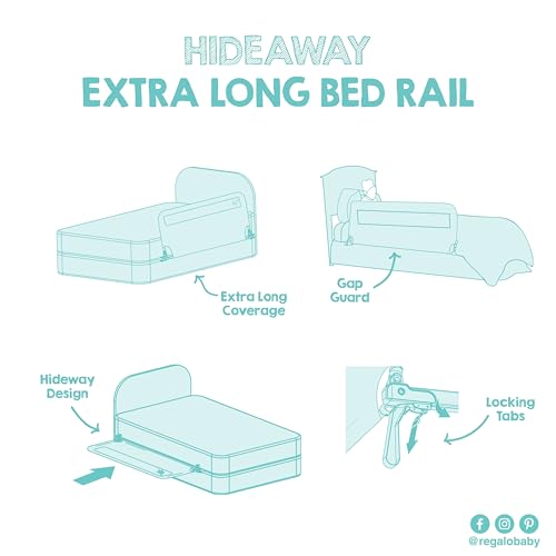 Product Description The Hide Away extra long is 54" long. It is no more a hassle in making the bed or changing the sheets. This is easy to assemble and no tools are required. The Hideaway feature doesn't get in the way of making the bed or changing the sheets. "Extra Long 54" For Added Security". The actual size of the bedrail assembled is 54" long (hinge point). This bedrail can function as a guard rail on a platform style bed but will not be able to be tucked under the mattress. From the Manufacturer The Hide Away extra long is 54" long. It is no more a hassle in making the bed or changing the sheets. This is easy to assemble and no tools are required. The Hideaway feature doesn't get in the way of making the bed or changing the sheets. "Extra Long 54" For Added Security". The actual size of the bedrail assembled is 54" long (hinge point).
