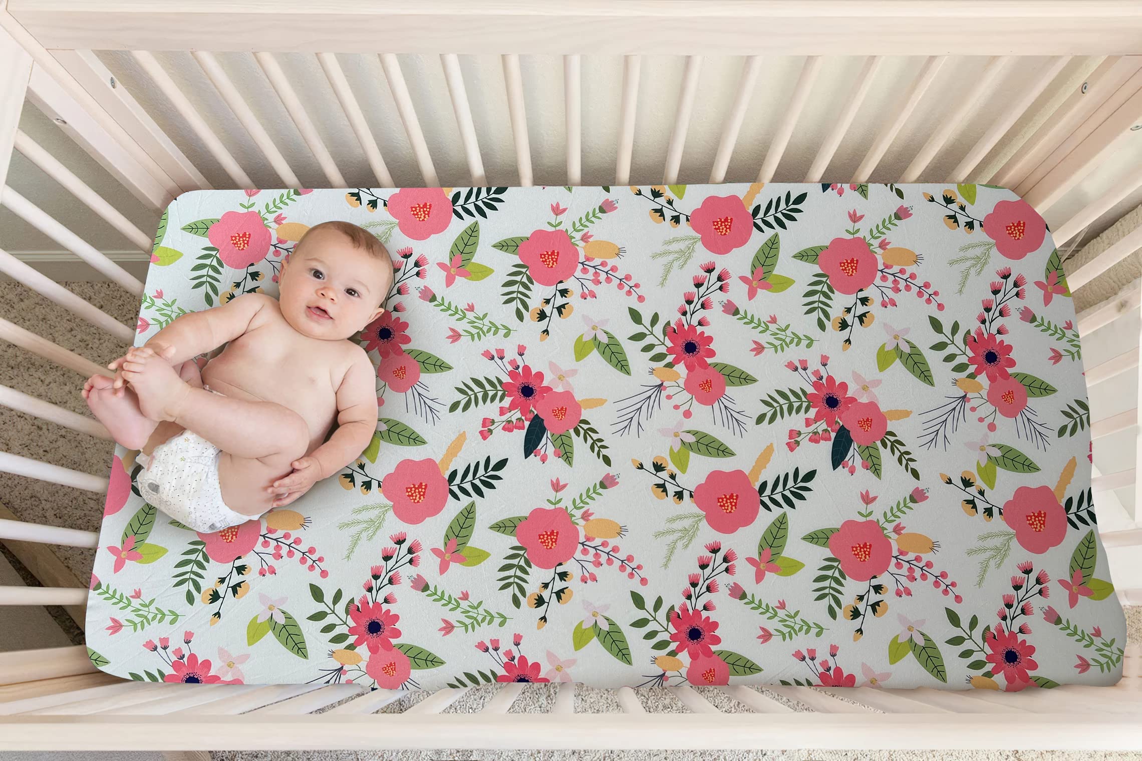 Sized for a standard sized crib or infant mattress 52”x 28”. Reinforced elastic lining for easy stretch and smooth fit!
