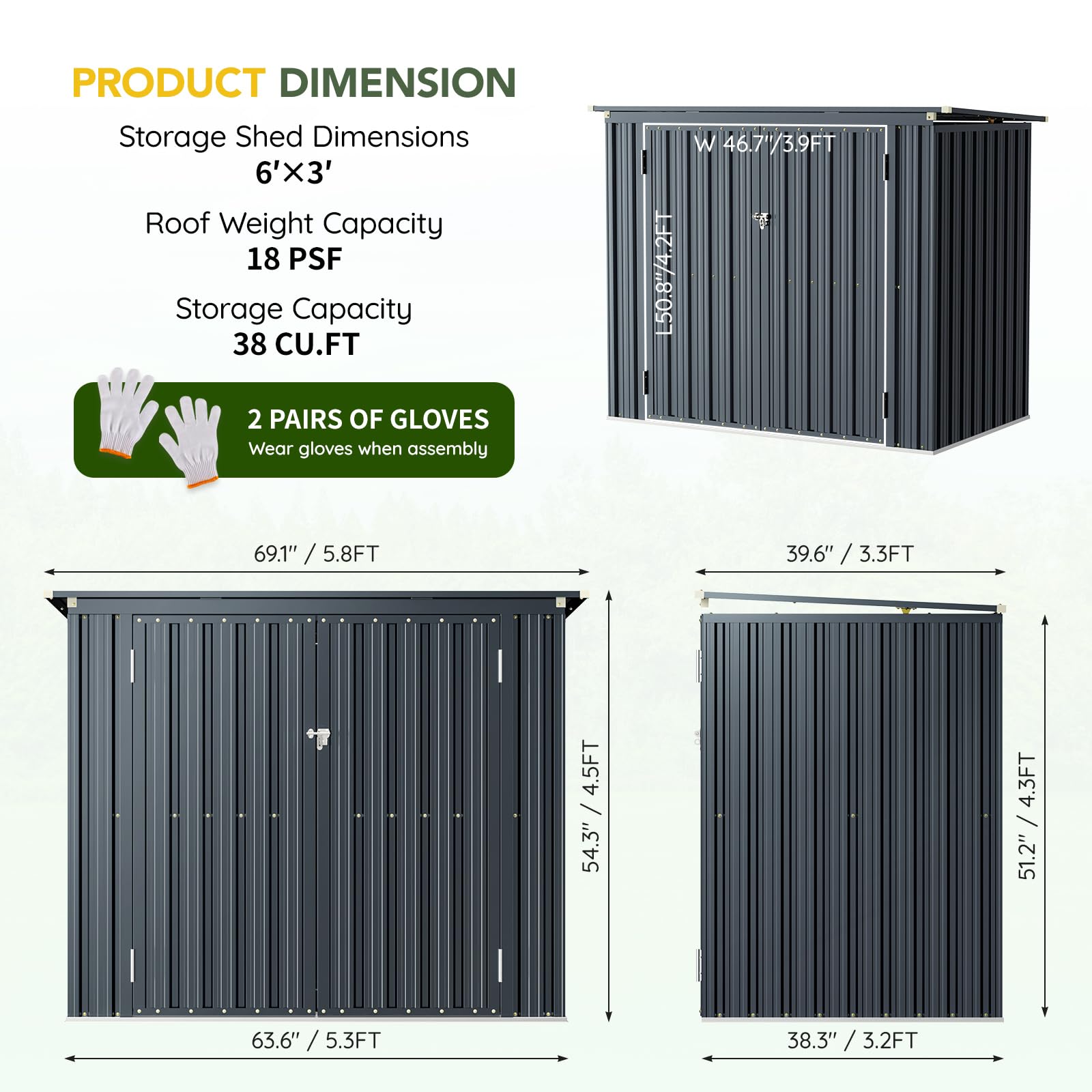 Designed for Trash Bins & Outdoor Organization This 6x3 FT outdoor trash can storage shed keeps garbage bins neatly hidden while maintaining easy access. Ideal for backyard, patio, garden, driveway, or side yard to improve curb appeal and reduce clutter.