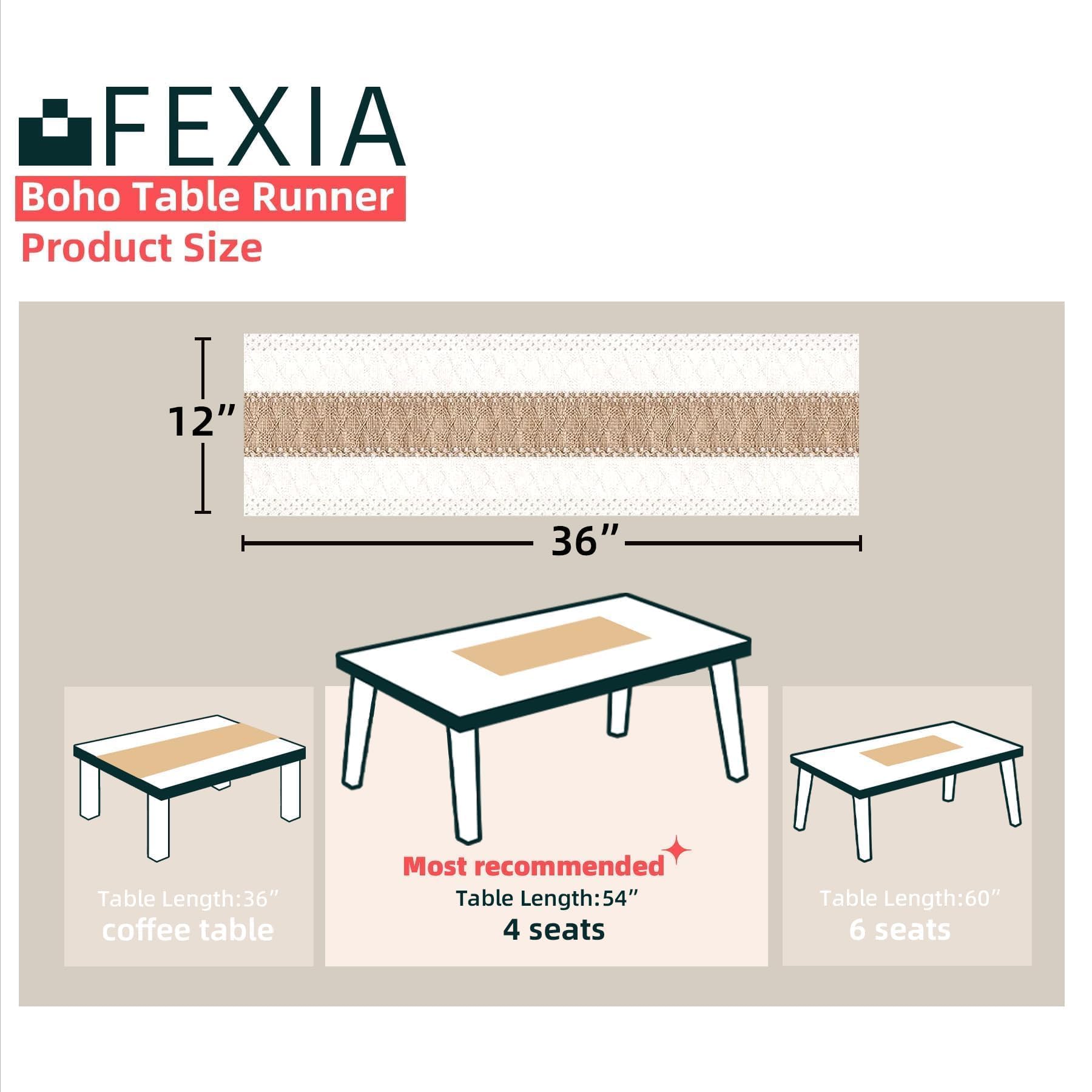 [Perfect 36 Inches Long] Our macrame table runner with tassels measures 12 x 36 inch, fits a dining table that seats 4-8 people. It can give your tables a rustic and boho look. (Because it is folded in the bag, when you take it out, the table runner will have creases, which will affect your measurement. So, please make sure the table runner is placed neatly and flat before measuring)