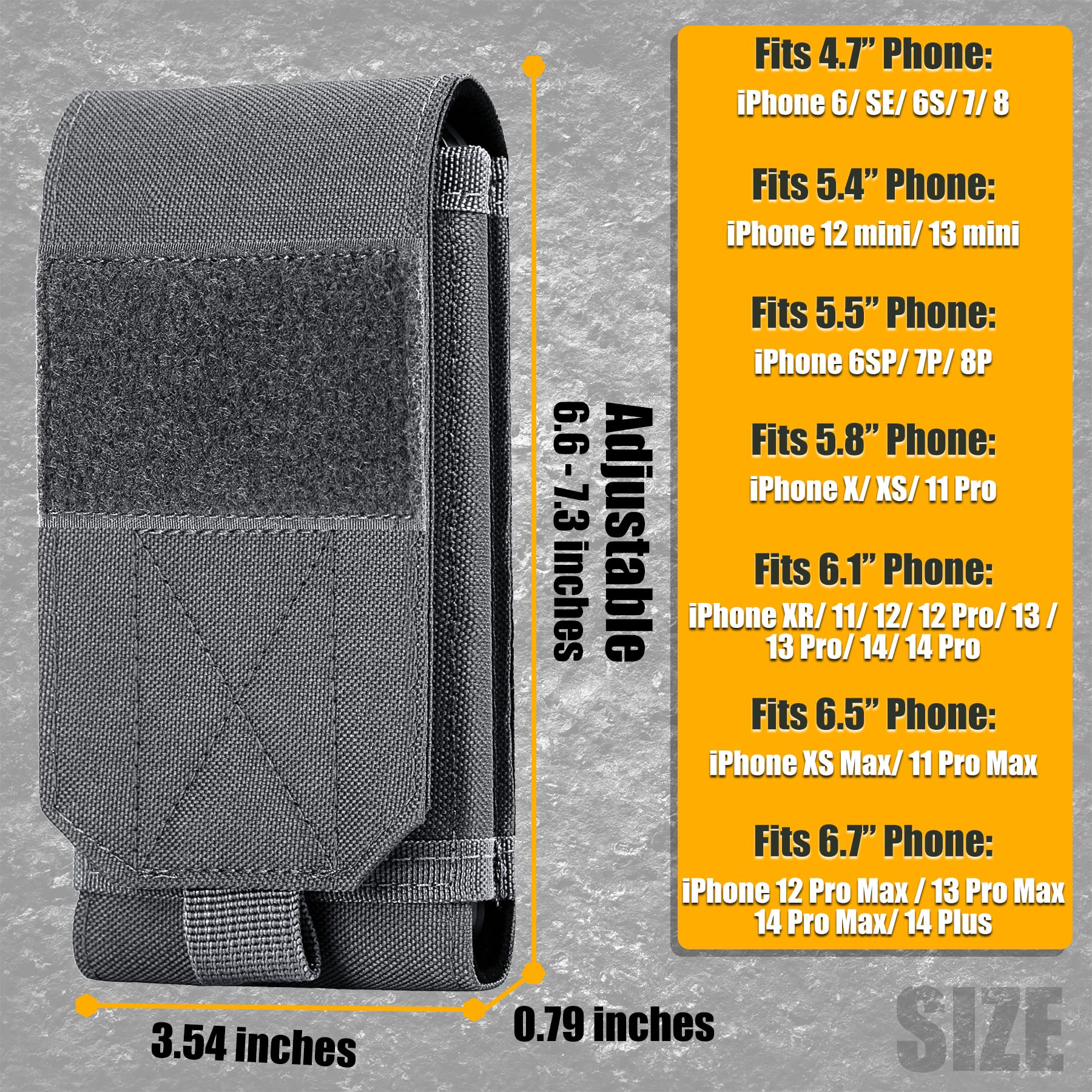 Can hold 4.7"-6.9" smartphones with a slim case on, like iPhone 17 Pro Max/17 Pro/17/Air/16 Pro Max/16 Plus/16 Pro/16/15 Pro Max/15 Pro/15 Plus/15/14 Plus/14 Pro Max/14 Pro/14/13 Pro Max/13 Pro/13/12 Pro Max/12 Pro/12/11 Pro Max/11 Pro/11/XS Max, Galaxy S24 Ultra, S24 Plus, S24, S23 Ultra, S23 Plus, S23, S22 Ultra, S22 Plus, S22, S21 S20 S10Plus S10 S10E S9Plus S9 S8Plus S8 A3 A5 A7 J3 J5 J7 and etc