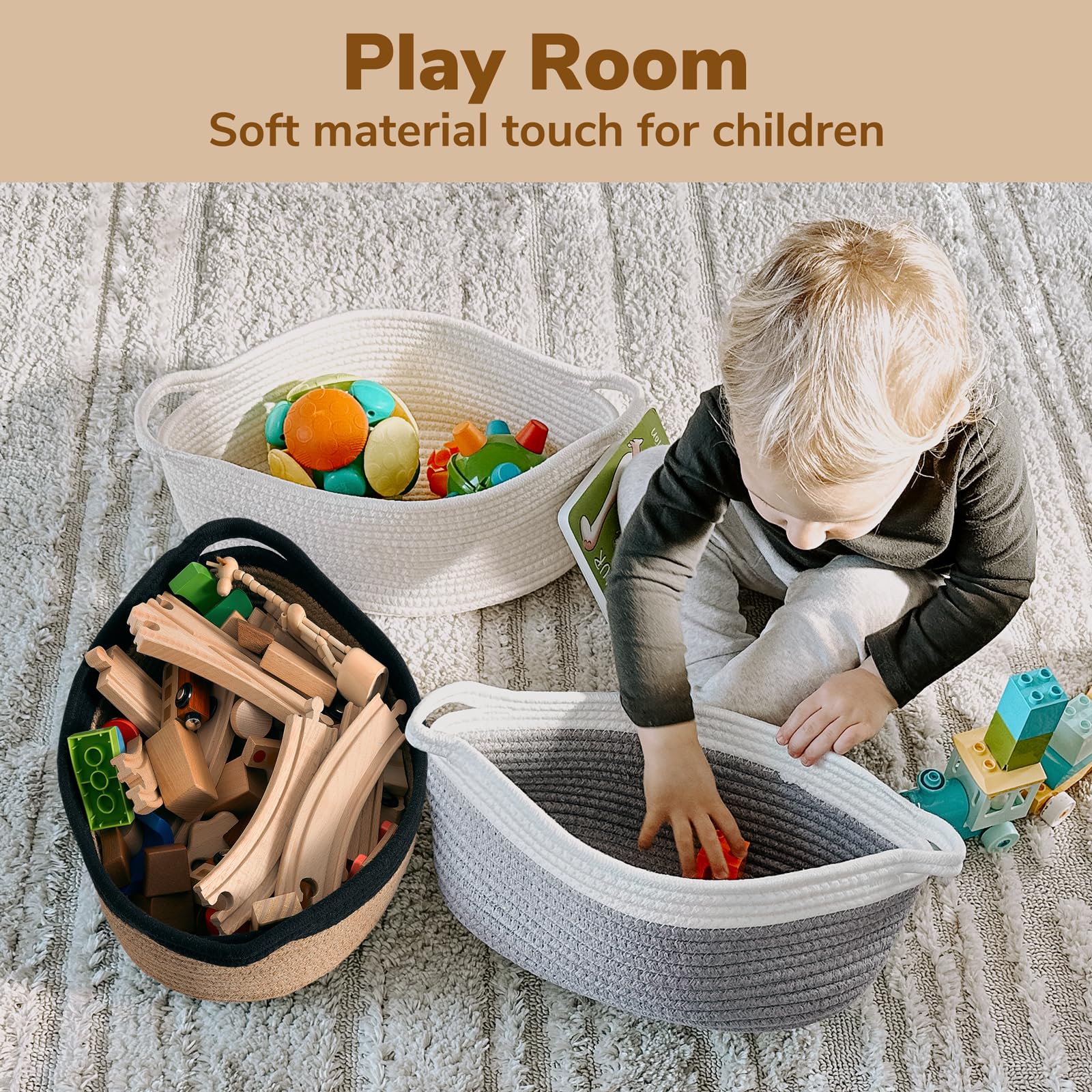 Superior materials: Our storage baskets are made of woven cotton thread, which is very soft and won't harm furniture or scratch items. The basket size is 12"x 8" x 5", seamless design is not easy to tear. This storage basket has a collapsible design with built-in separate handles for easy carrying and storage. The basket is shaped like a small boat and is a decorative addition to your cabinet