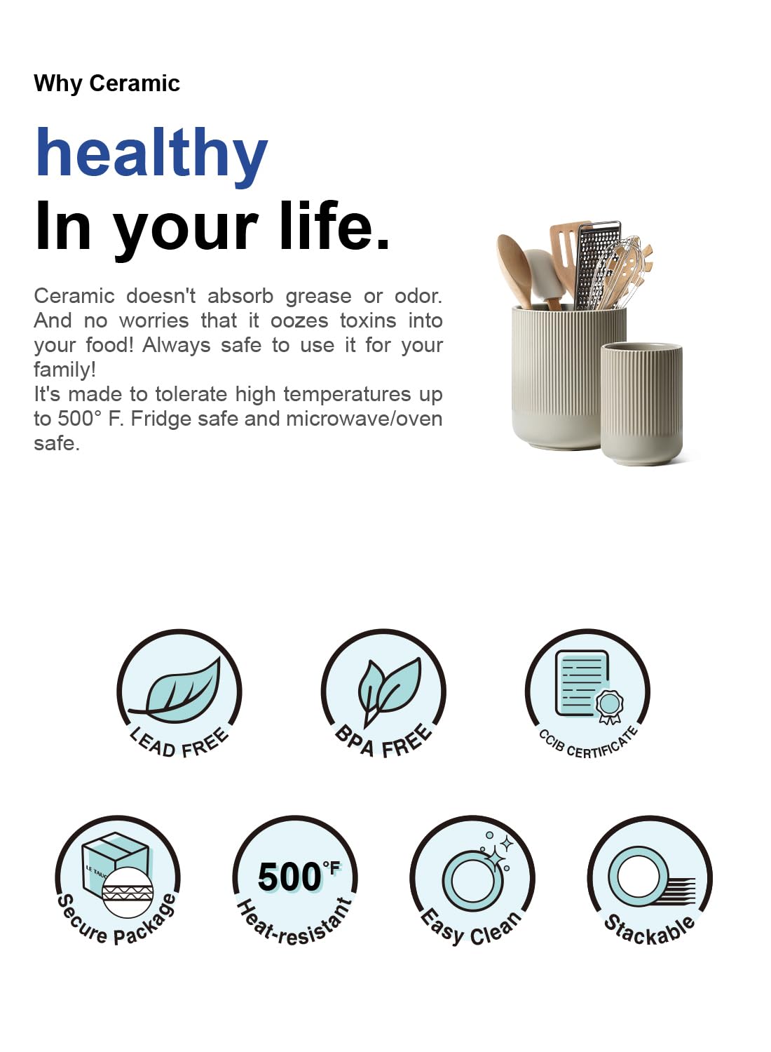 Solid and Secure: This utensil holder for kitchen counter provides easy access to your utensils, offering a stable and relaxing experience due to its substantial weight; Crafted from premium ceramic materials, these holders are not only robust but also easy to clean; Rest assured, they will remain securely in your countertop, giving you peace of mind while using them