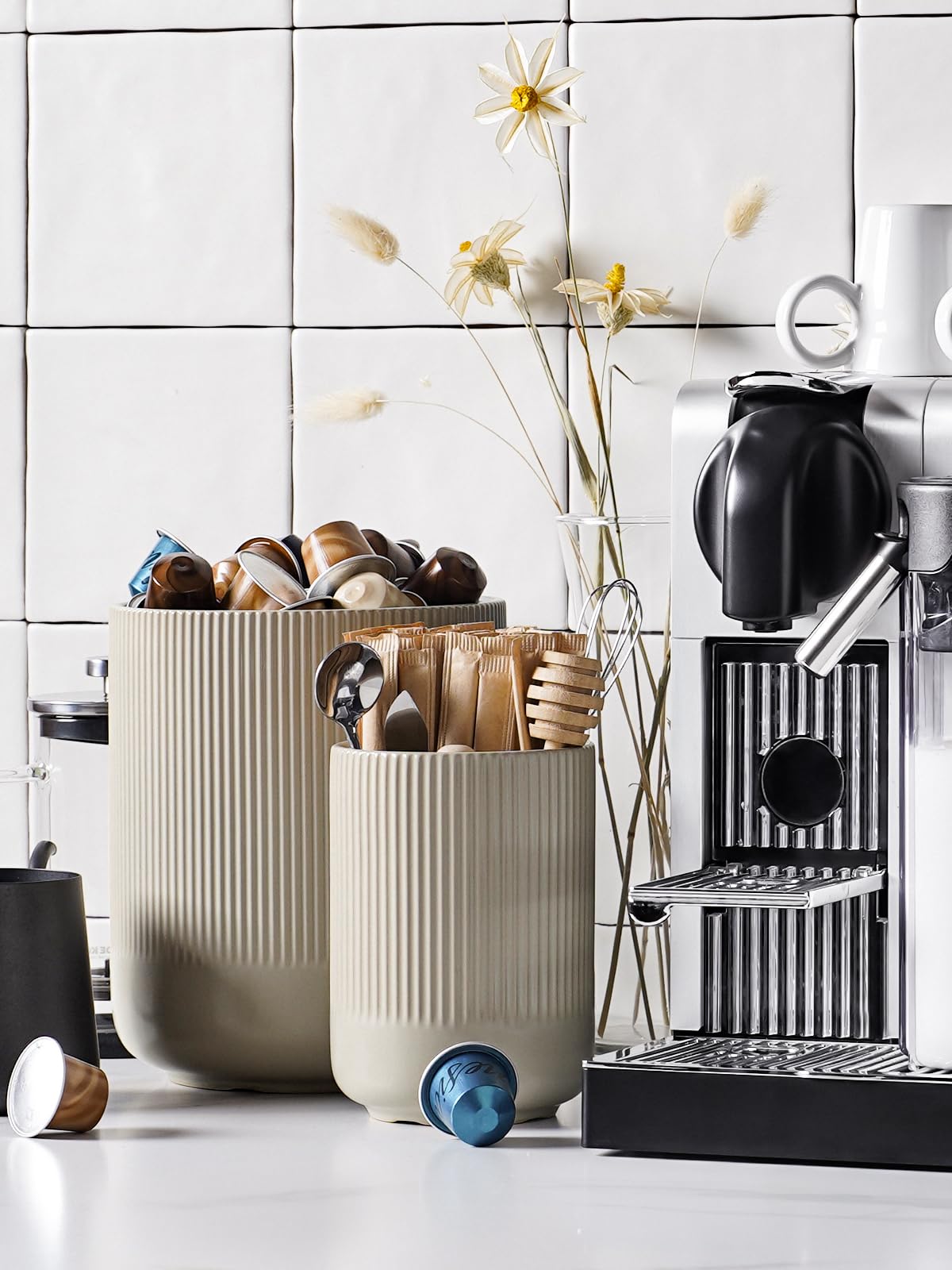 Multi-Functional Utensil Holder: These kitchen utensil holders do more than just store cooking utensils; They also double as elegant vases, offering a stylish home for hair tools like combs, and can seamlessly house coffee pods and stirrers on your bar countertop; Their versatility knows no bounds