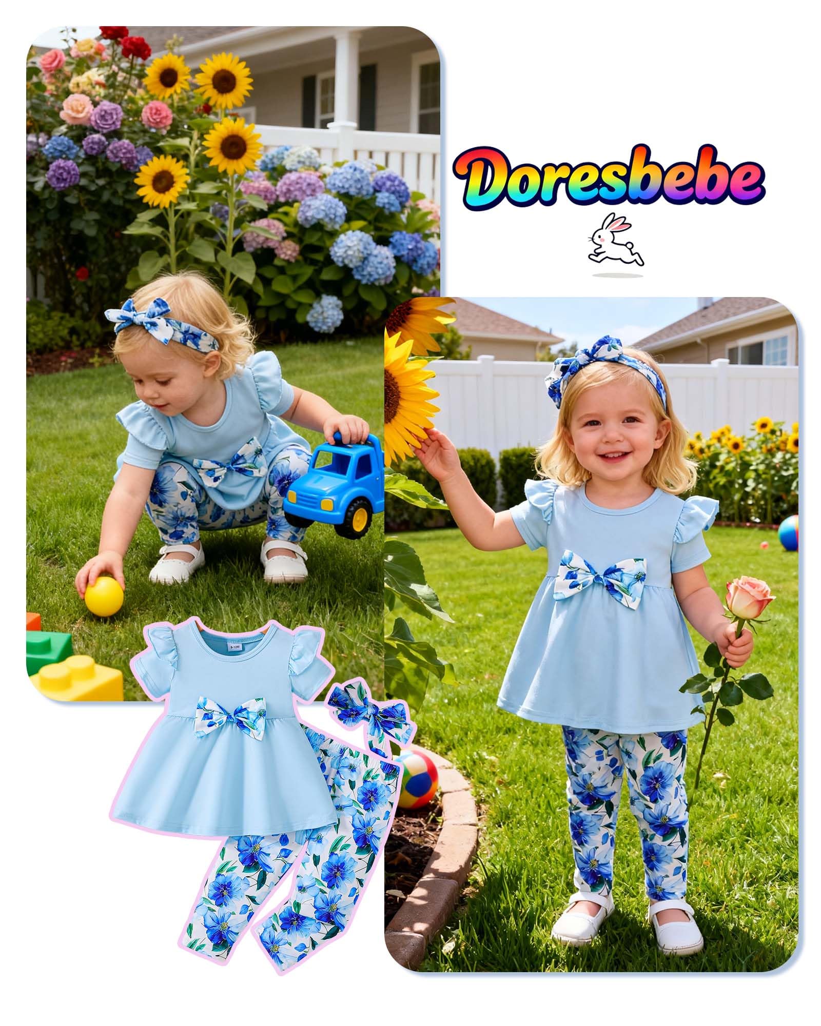 Recommended Baby Girl Age: Baby girls' clothing set is suitable for 9 month to 3 years old girl. Such as 9-12 months girl clothes, 12-18 month girl clothes, 18-24 months girl clothing, 2t-3t toddler girl clothes outfits.
