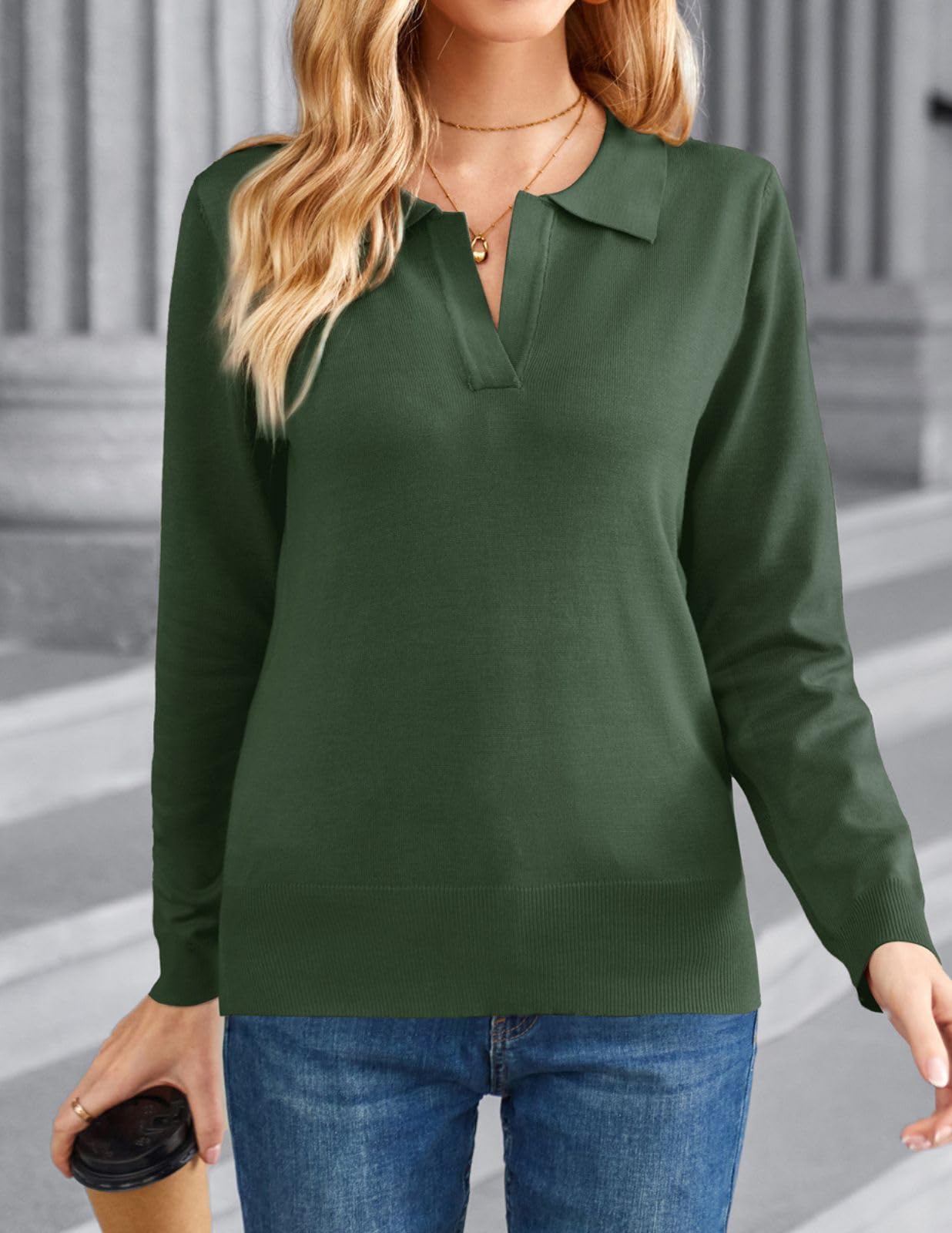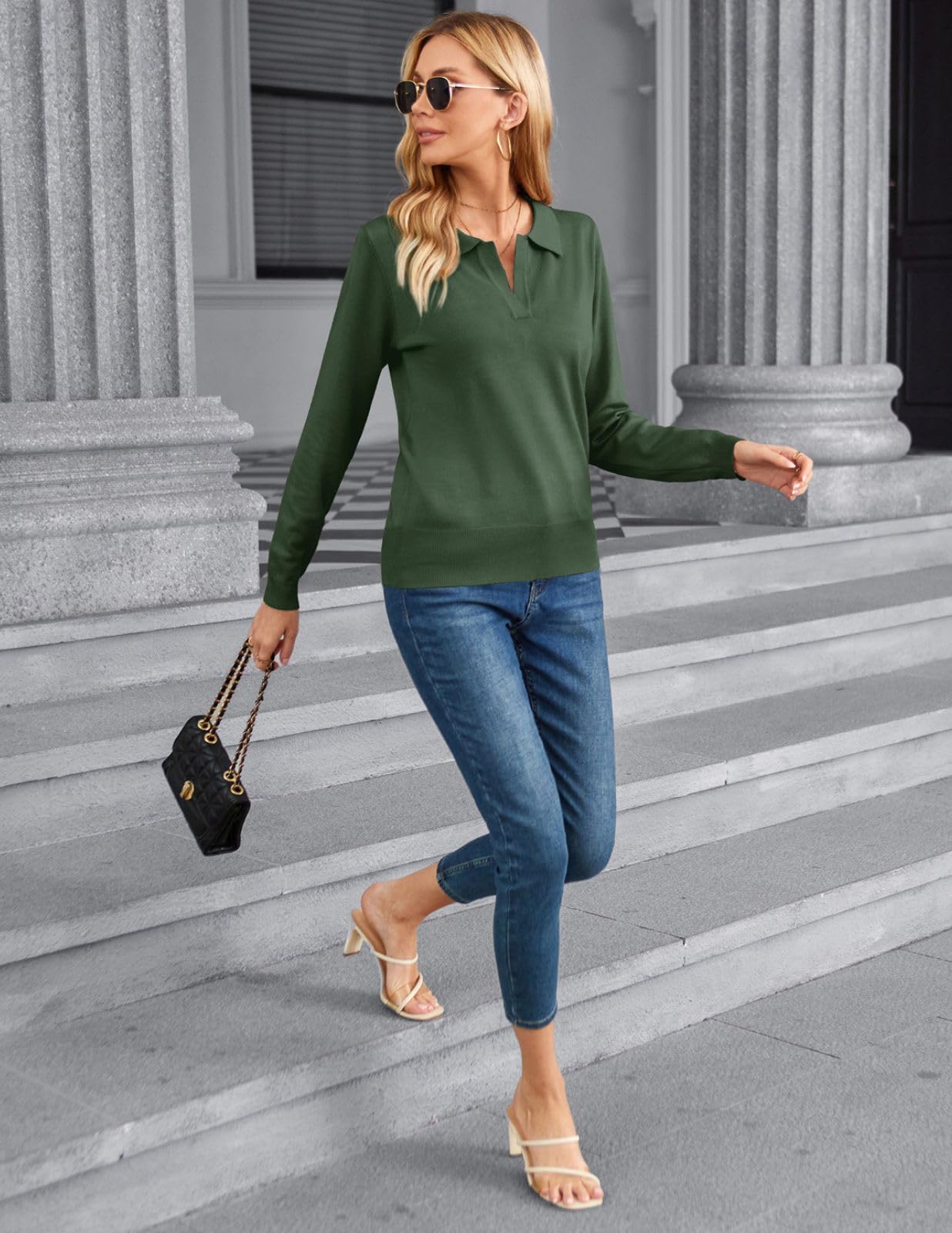 Material: Perfect fit, soft, comfortable and stretchy, this women's long sleeve polo sweater is lightweight and breathable, very flattering