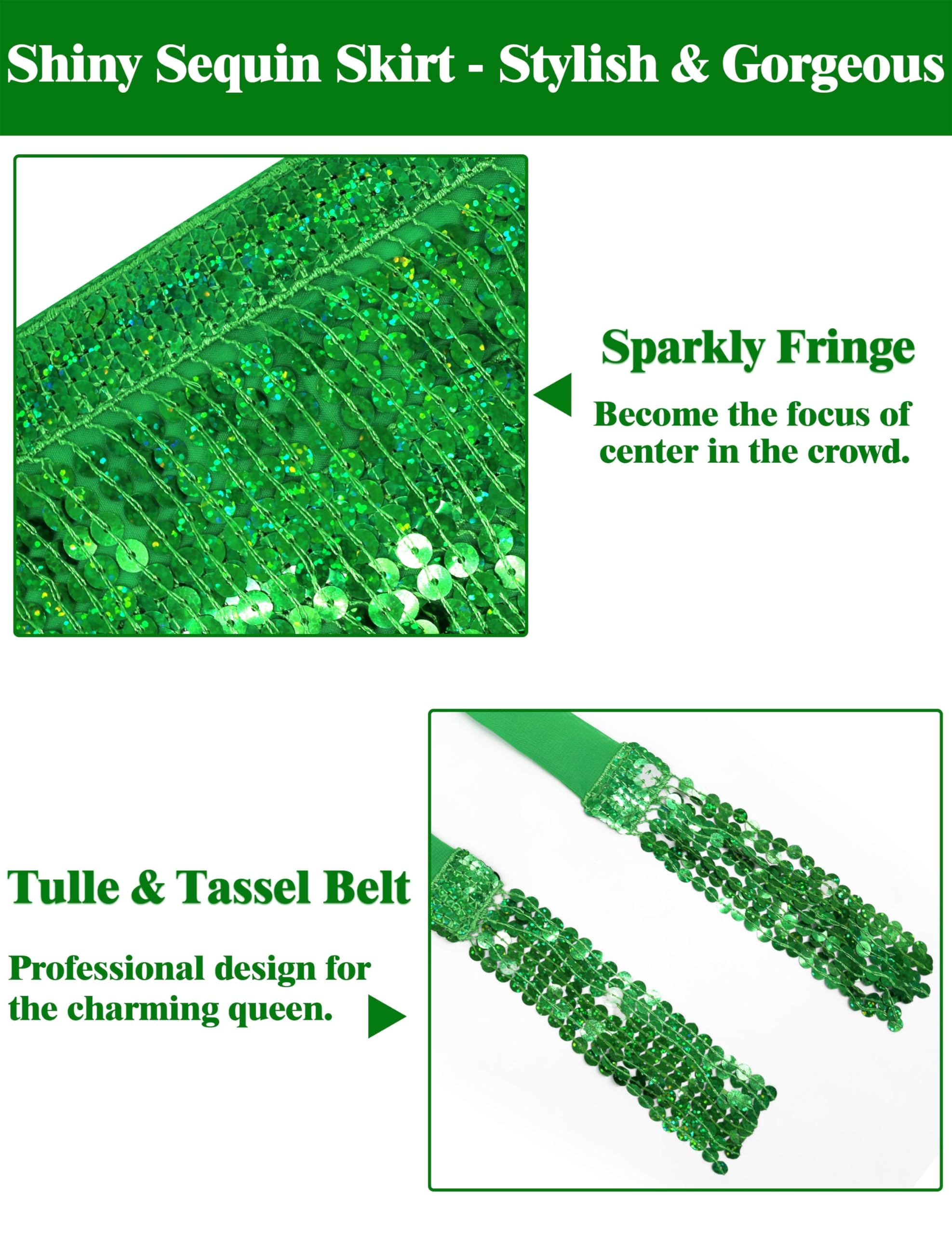 EXCELLENT FASHION ACCESSORY: The tassle sparkle skirt is a perfect choice to match your clothes and you can wear it as beach outfit, belly dance outfit, rave outfit and others. There are several colors for you to choose to meet your various needs. Wear the sparkle flapper skirt, you'll be sexy queen.