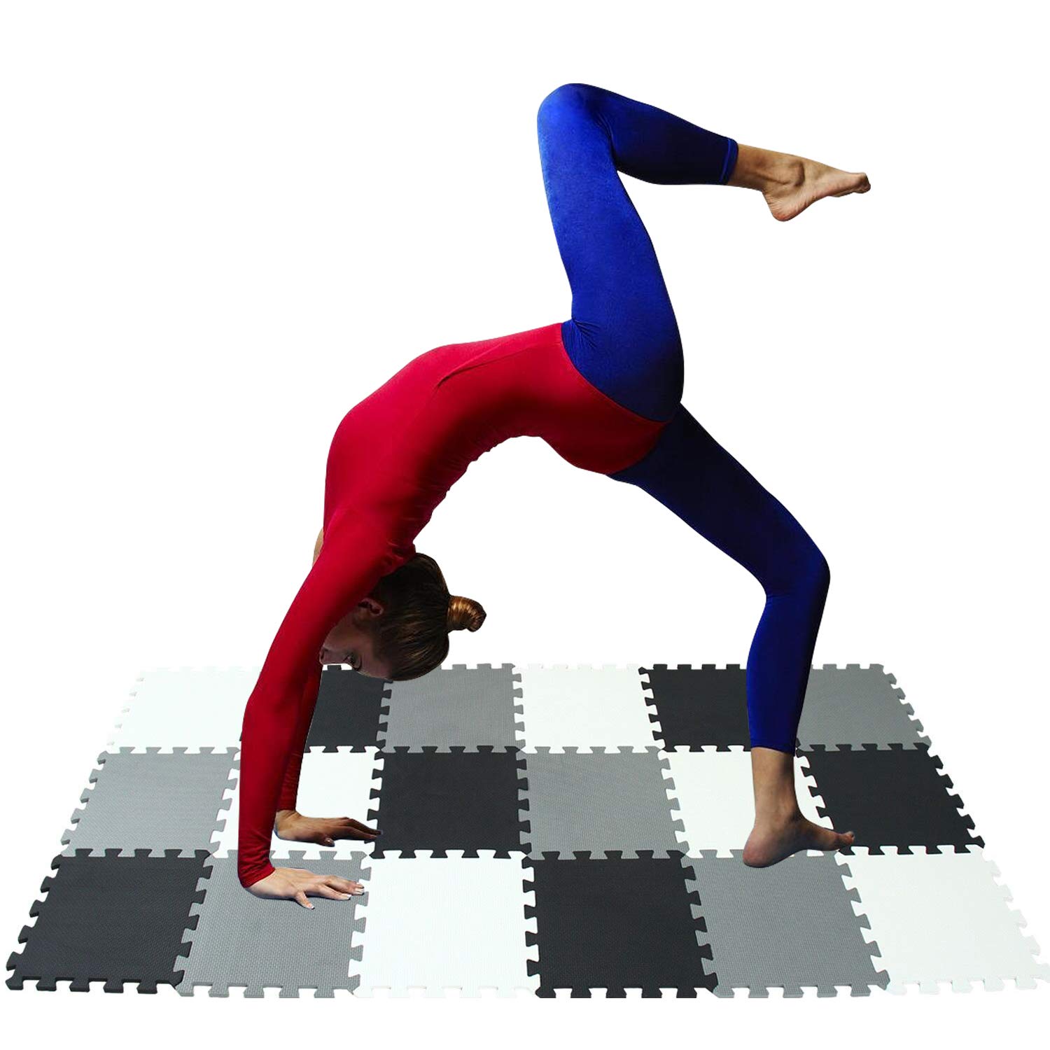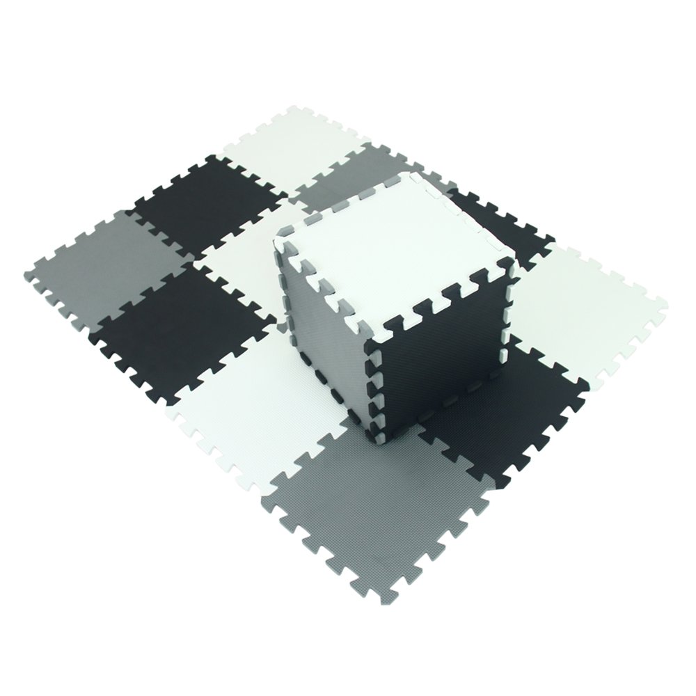 Cover area: 86CM x 170CM( ±1CM) / approx. 1.46 SQ. M,one sets 18pcs,(300mm x 300mm x 10mm). Package includes 6 WHITE ,6 BLACK and 6 GRAY interlocking foam tiles, making it a perfect workout and training accessory.
