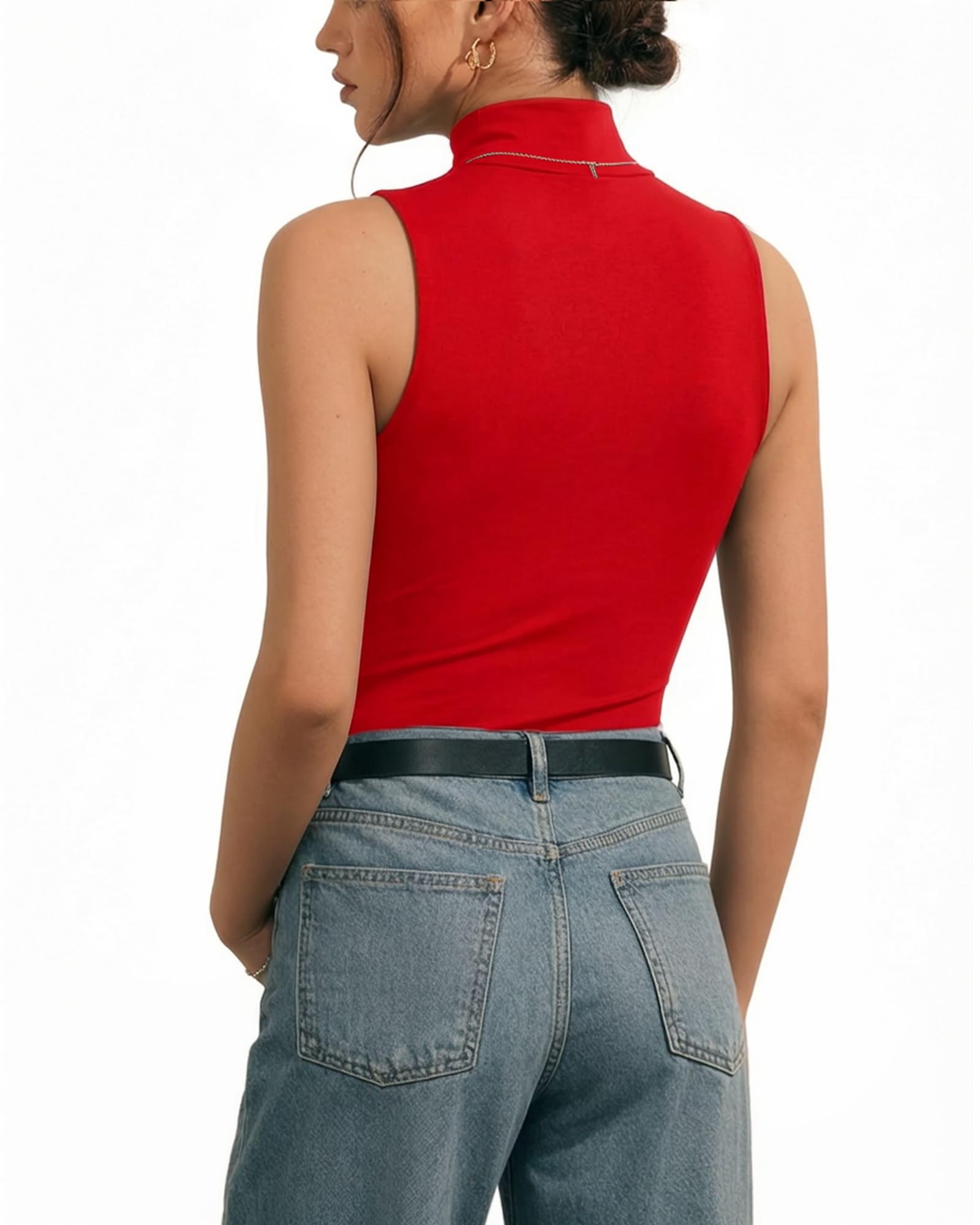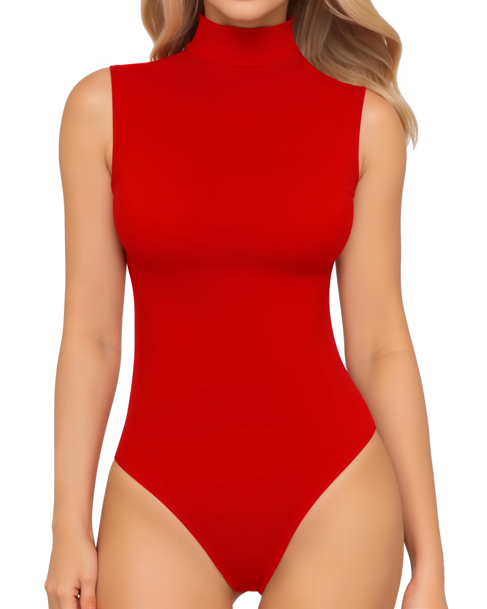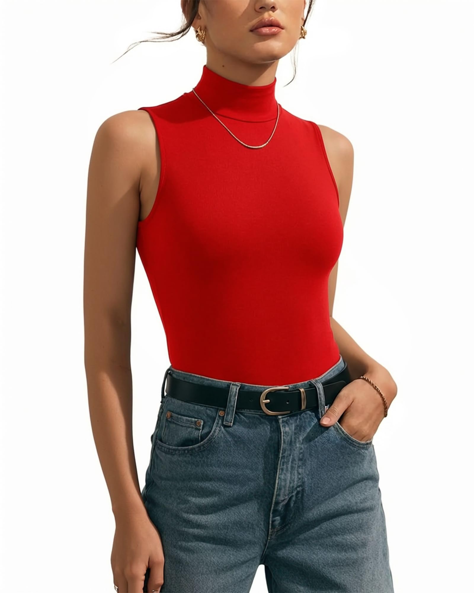 Second-skin Bodysuit Collection: MANGOPOP seamless Mock Turtle Neck sleeveless bodysuit ,offering an incredibly soft, stretchy, lightweight, and breathable feel akin to a second skin