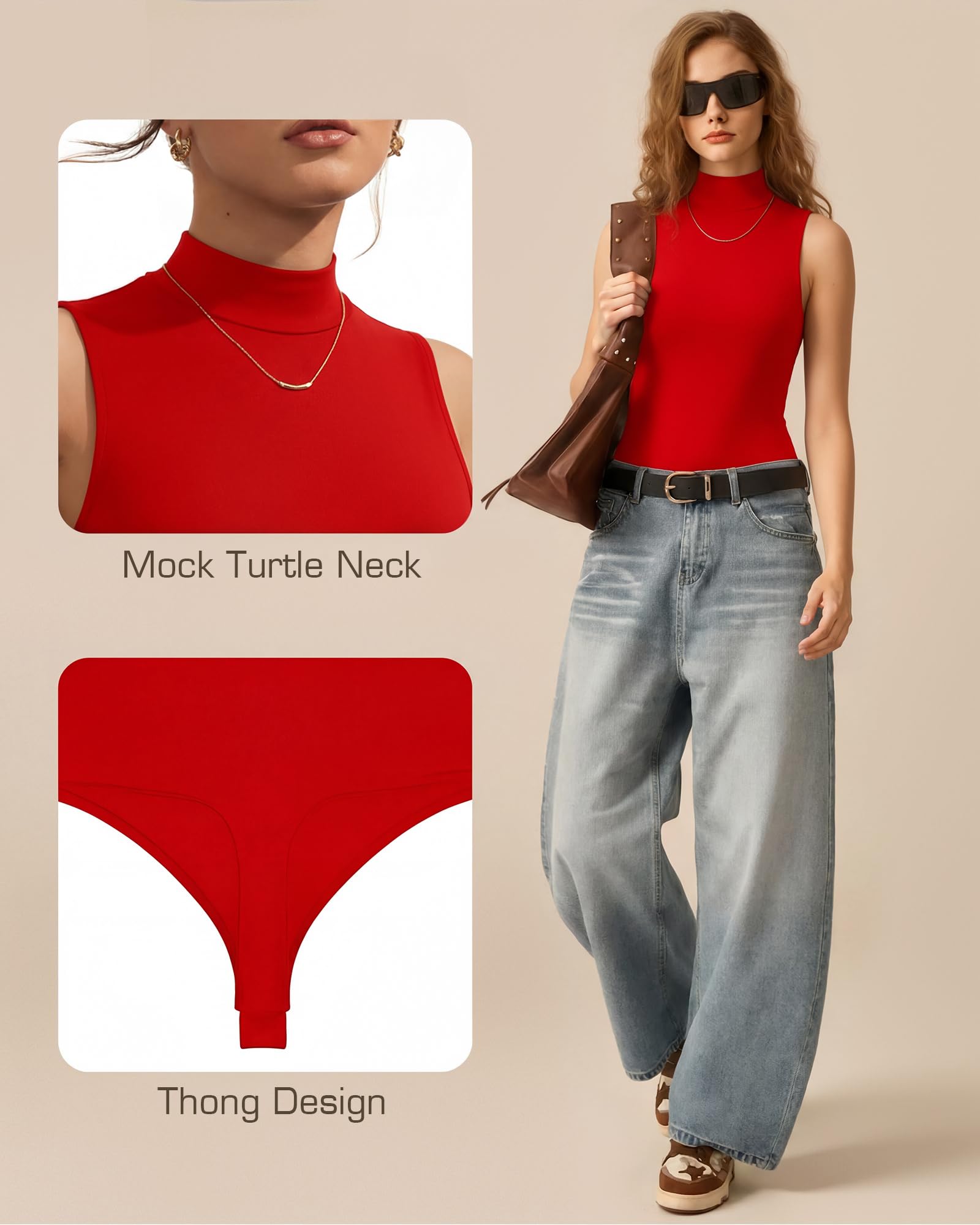 Versatile Wardrobe Essential: The basic Mock turtleneck leotard tank tops bodysuit for women is easy to pair with jeans, shorts, skirt in all season