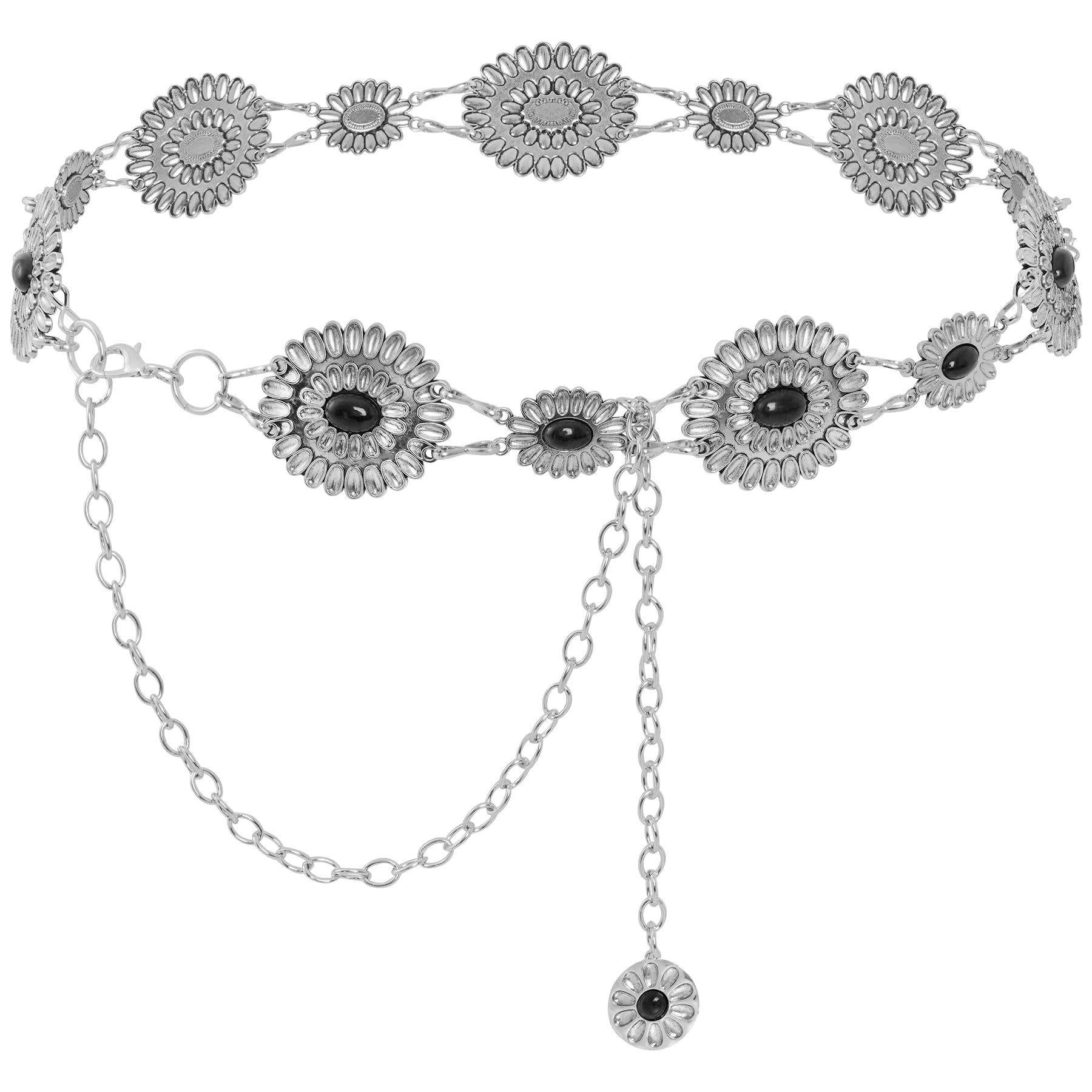 Women Oval Concho Western Cowgirl Waist Links Chain Belt Material: The women boho chain belts dresses jeans sweater belt is made of metal, durable and longevity, smooth and glossy surface, stylish and fashionable, not easy to fade or break, adjustable and comfortable to wear.
