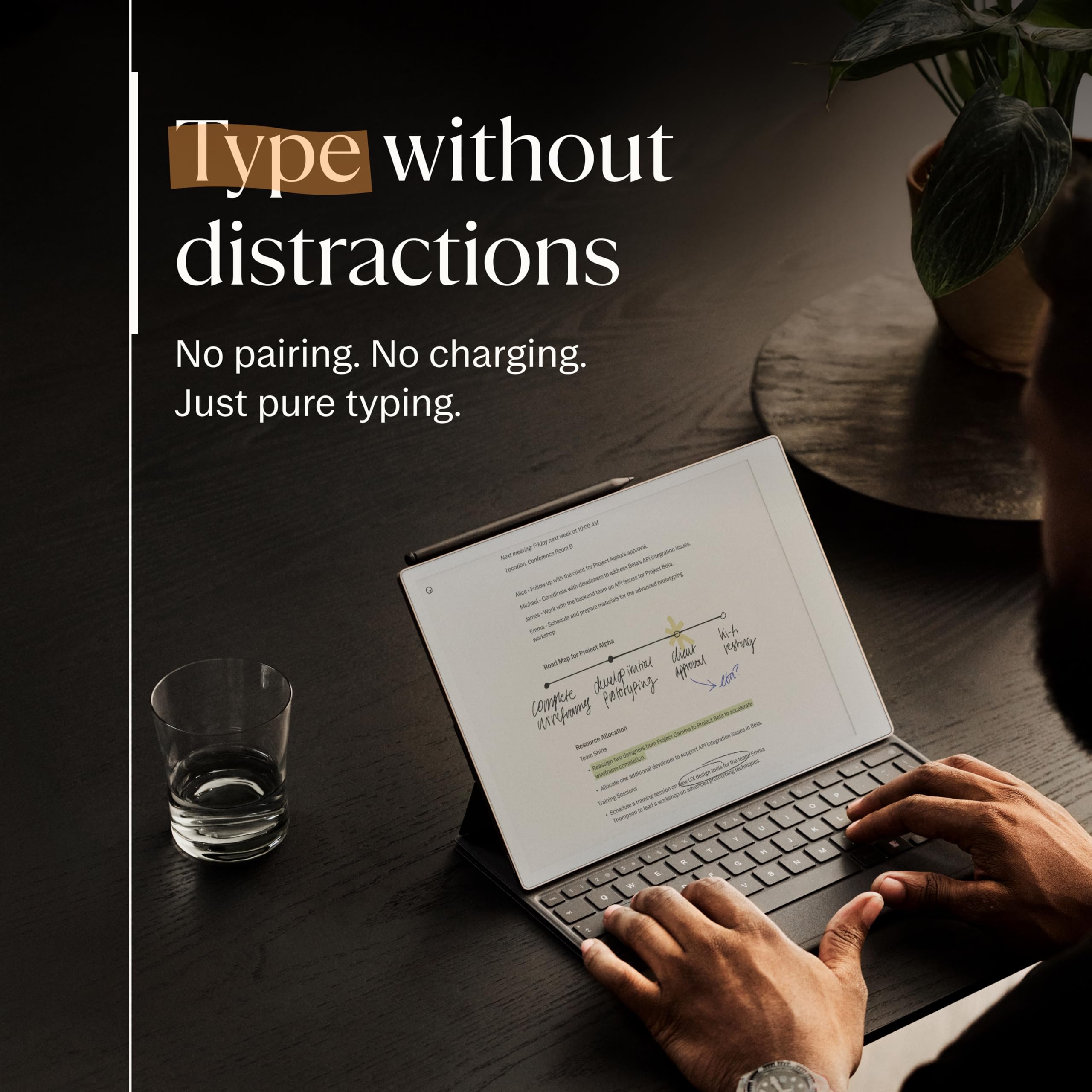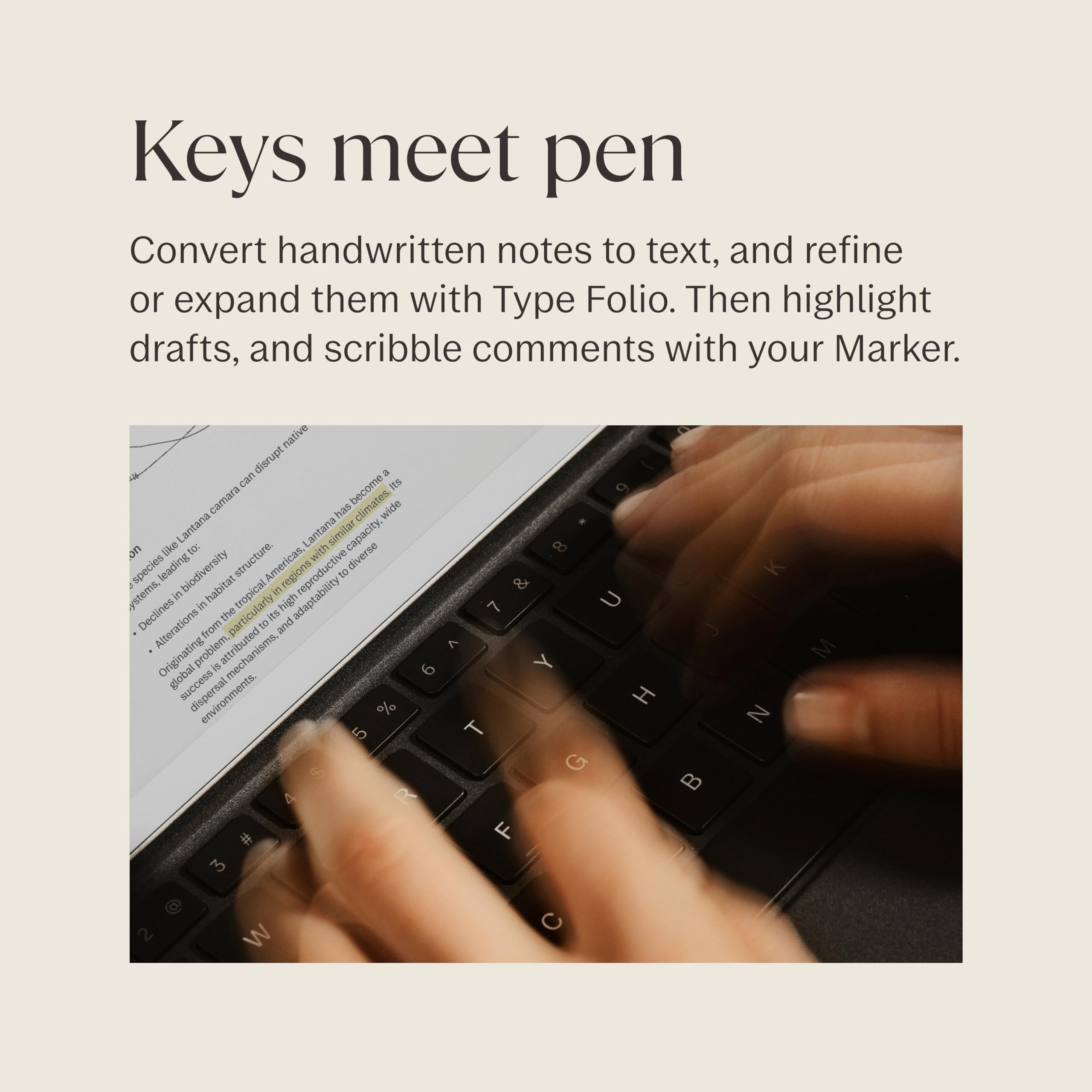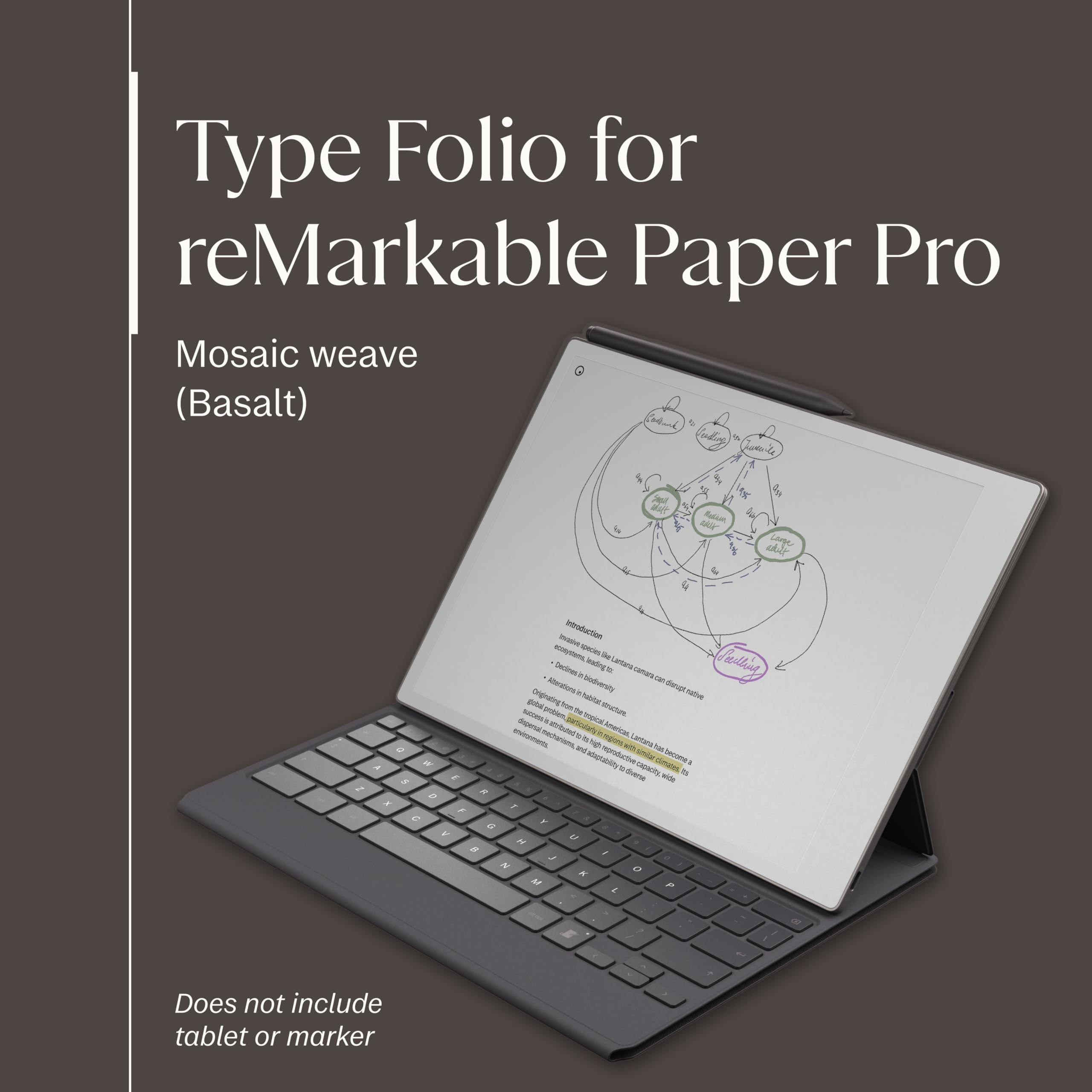 Experience comfortable, focused typing on reMarkable Paper Pro with the new Type Folio. Now, you can seamlessly combine or switch between handwriting and typing on a more spacious and colorful digital paper display. Get the convenience of a slim, tactile, and backlit keyboard with the protection of a stylish cover that connects to your Paper Pro magnetically. No pairing, charging, or cables, just distraction-free writing.