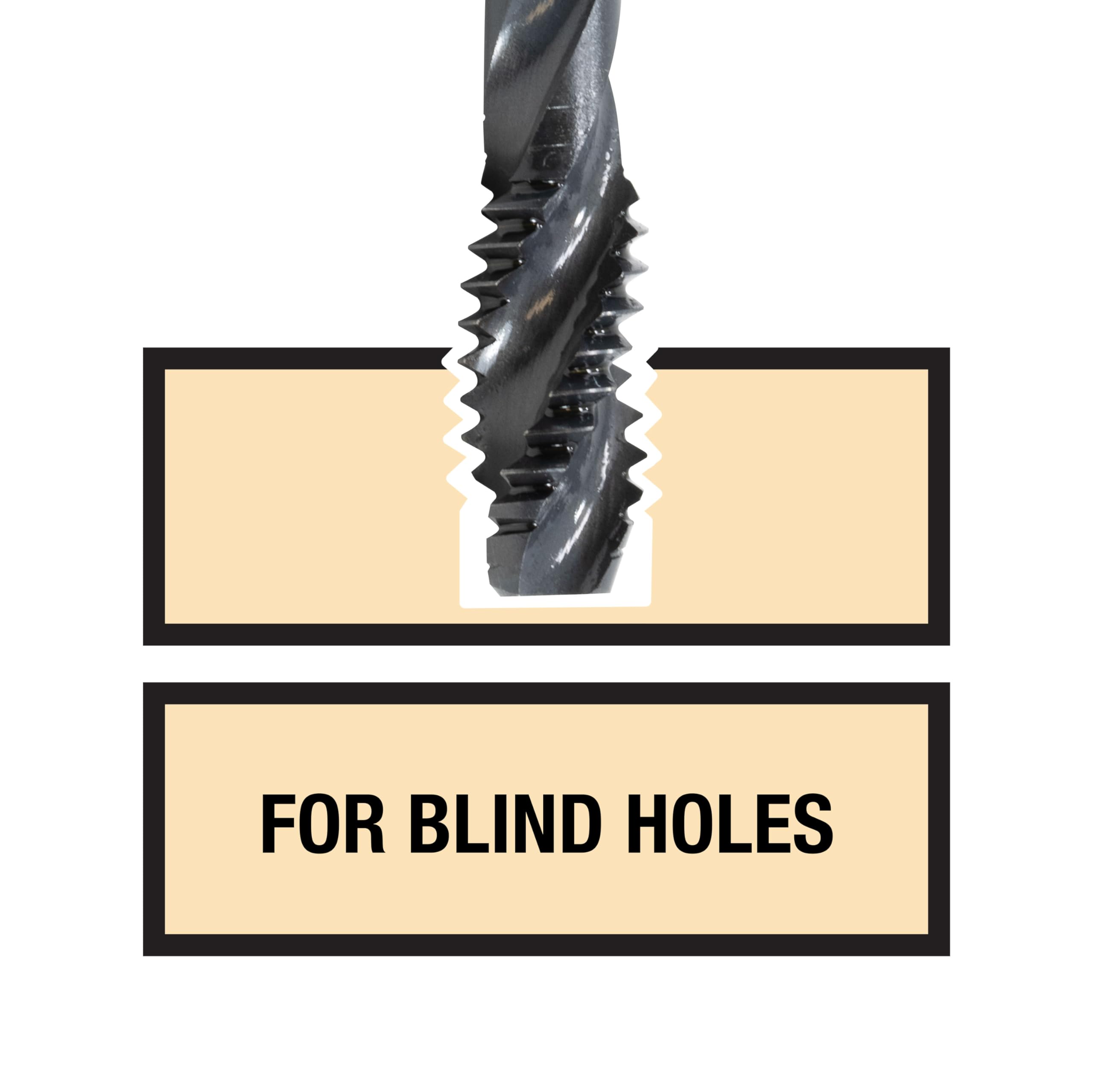 Spiral flute design ideal for blind hole tapping, pulls chips upward to prevent clogging