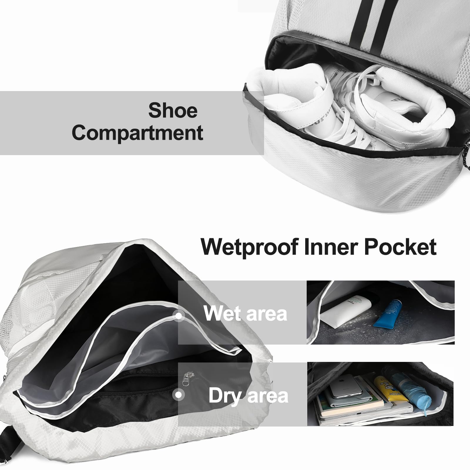 Dry/Wet Separation: Our gym bag is designed with multi-pocket. There have independent shoes compartment and wet proof inner pocket, which makes it convenient for gym-goers, swimmers, and anyone who needs to keep their gear separated and organized