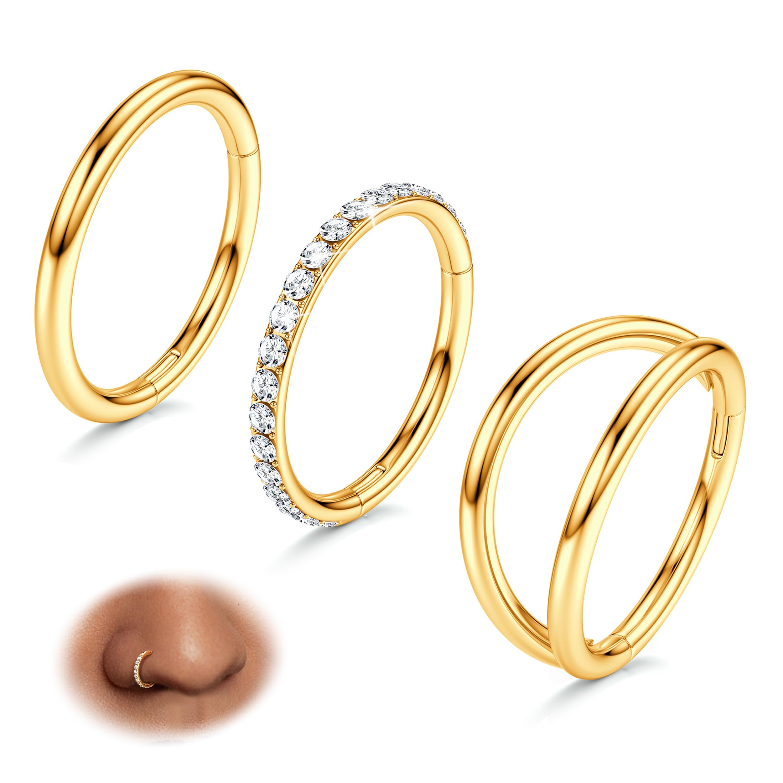 Perfect for Nose, Cartilage, Septum, Tragus Piercings,Helix Earring, Daith,Conch,Rook Ear Piercing, Lip Rings, Belly Ring,Nipple Piercing and more. Very easy to open/close a click closure by hand. Not require a tool.Smooth surface, comfortable to wear without sharp edge. Match with suitable apparel for different occasion. Smooth Surface and easy to use.