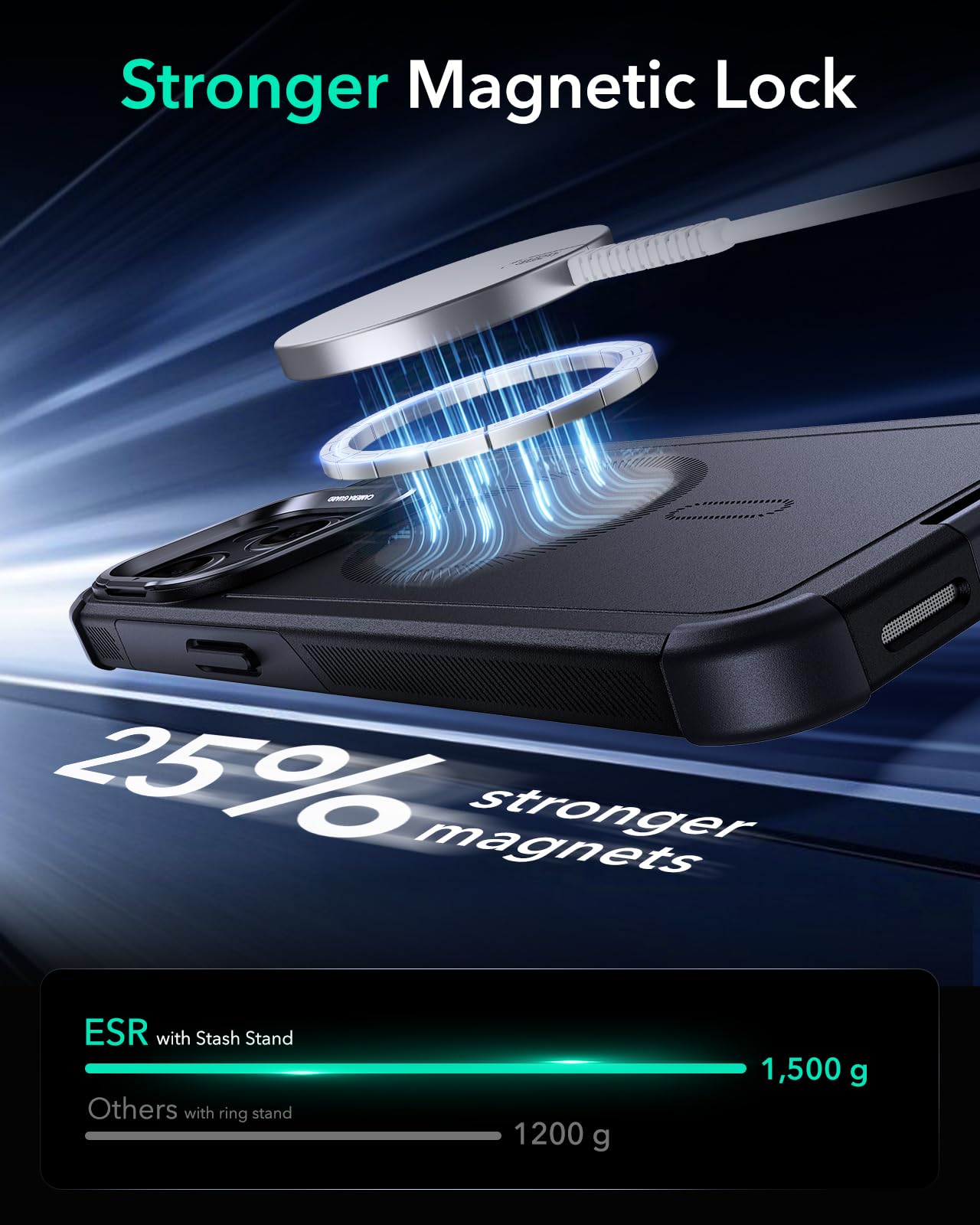 Stronger Magnetic Lock: powerful ring of magnets with 1,500 g of holding force enables faster, easier place-and-go wireless charging and a secure lock on any MagSafe accessory
