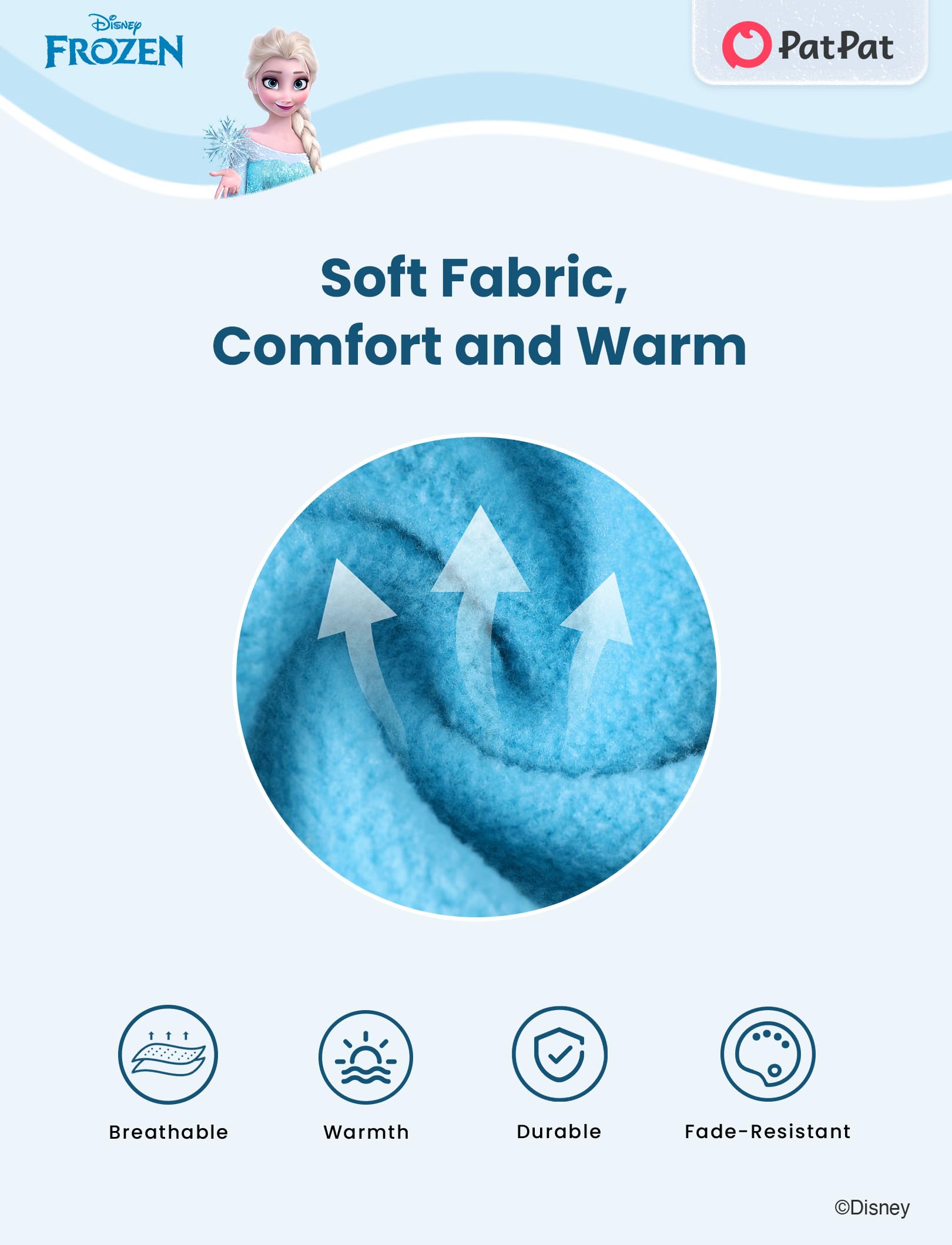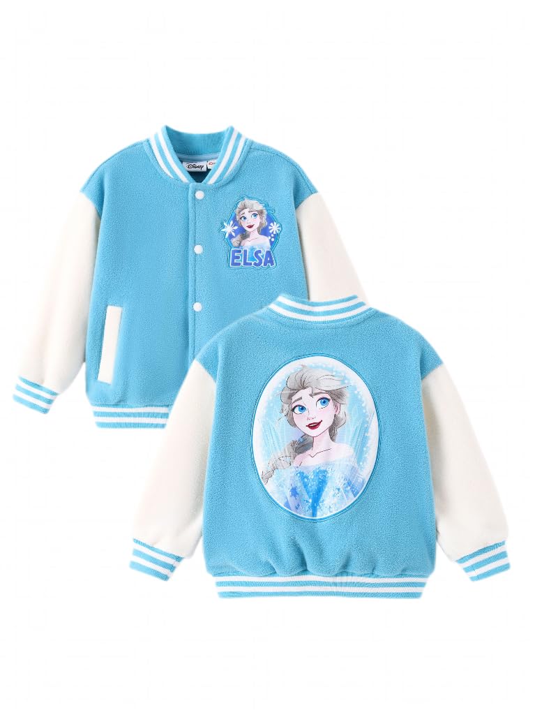 Charming & Stylish Design: Keep your little one cozy and trendy with this Disney Elsa varsity jacket! Featuring an adorable Elsa patch, this light blue fleece jacket with white sleeves and striped cuffs offers both warmth and style. Perfect for kids aged 2-6, itβs ideal for school, outdoor play, or any Disney event, combining comfort with a fun, iconic design