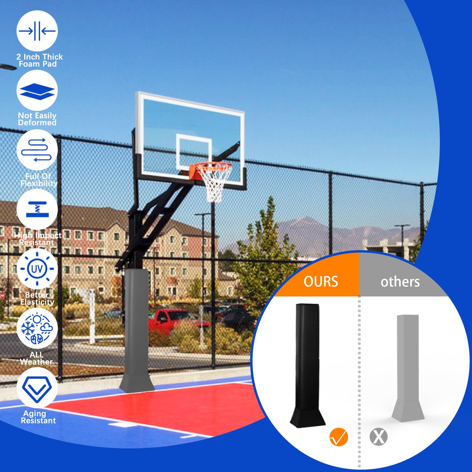 VANCL basketball square pole pad is all-weather, durable, weather-resistant and uv-resistant which offers ultimate protection for player in basketball court, playground, gym etc.