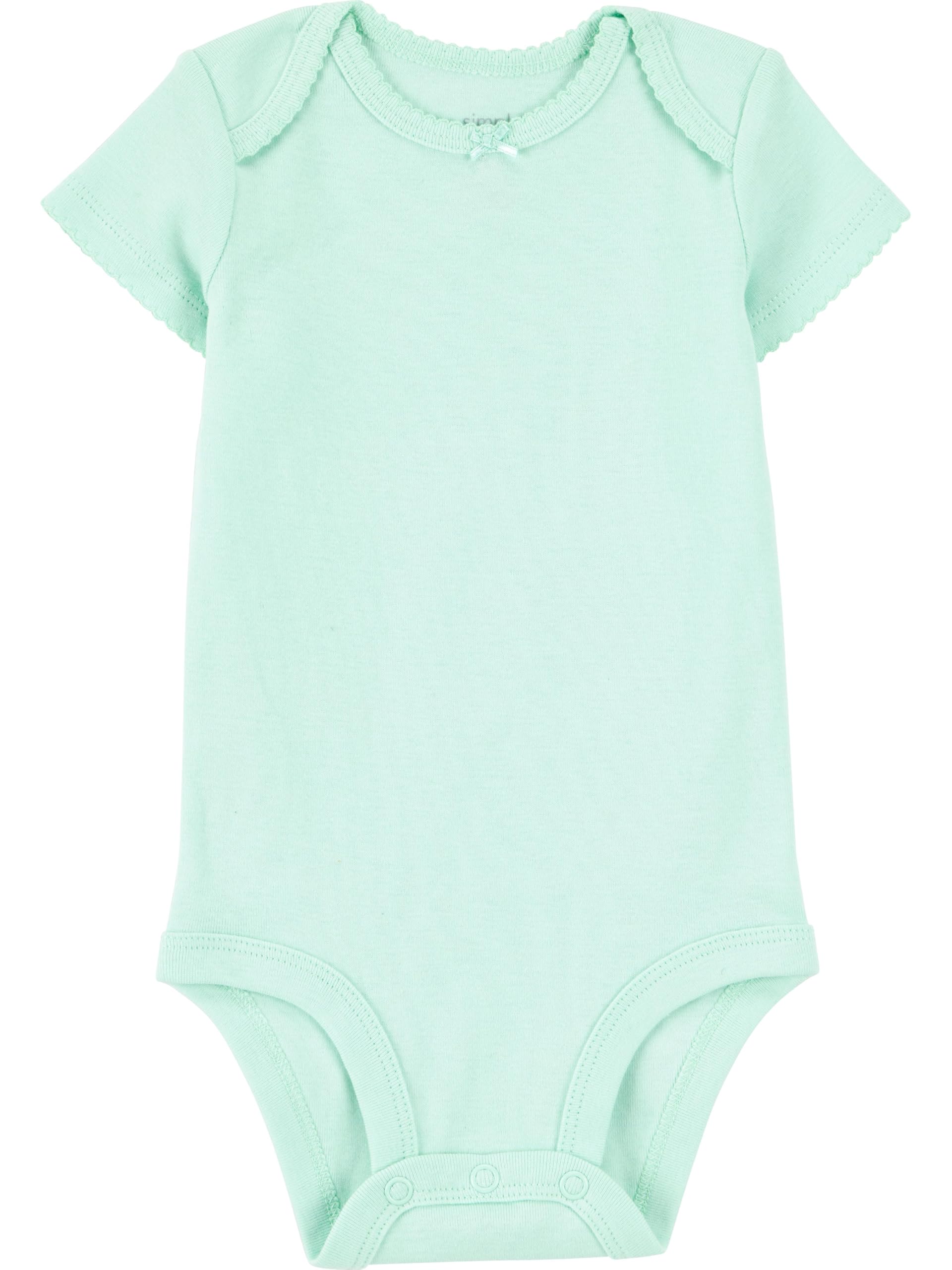 Description Simplify dressing your baby girl with this 6-pack of short-sleeve bodysuits from Simple Joys by Carter's. Each bodysuit features expandable shoulders that make it easy to slip over your baby’s head, while the strong, nickel-free snaps ensure quick and hassle-free diaper changes. Made from soft fabric, these bodysuits are gentle on your baby's skin and perfect for everyday wear. The tagless design eliminates irritation, keeping your baby comfortable all day long. With OEKO-TEX Standard 100 certification, you can trust that these bodysuits are safe and free from harmful substances. Available in a convenient 6-pack, these bodysuits provide exceptional value and are designed to mix and match easily with any outfit. Simple Joys by Carter's delivers high-quality, stylish clothing at affordable prices, making this 6-pack a smart choice for parents looking for both quality and value.