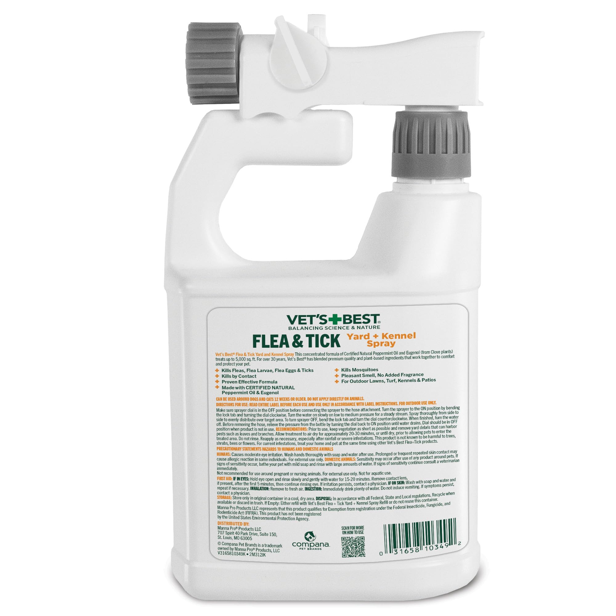 Vet’s Best Flea and Tick Yard and Kennel Spray offers a powerful plant-based solution for protecting your outdoor spaces from fleas, ticks, and mosquitoes. Designed for easy application with a ready-to-use hose attachment, this formula covers up to 5000 square feet, making it ideal for yards, kennels, patios, and dog runs. The natural blend of certified essential oils including peppermint oil and eugenol from clove plants effectively kills fleas, flea eggs, ticks, and mosquitoes on contact while being safe for dogs and the environment when used as directed. Made without the use of harsh chemicals, this flea and tick yard spray provides long-lasting protection without leaving harmful residues behind, making it a smart choice for pet owners who care about both performance and safety. Whether you're managing a flea infestation or maintaining routine prevention, Vet’s Best Yard and Kennel Spray ensures a clean outdoor environment for pets and families alike. Perfect for use around lawns, garden areas, decking, and landscaping, this product supports natural pest control without compromising your pet’s health or your backyard ecosystem. Trust Vet’s Best for effective outdoor flea and tick control backed by veterinarian-formulated, plant-powered science.