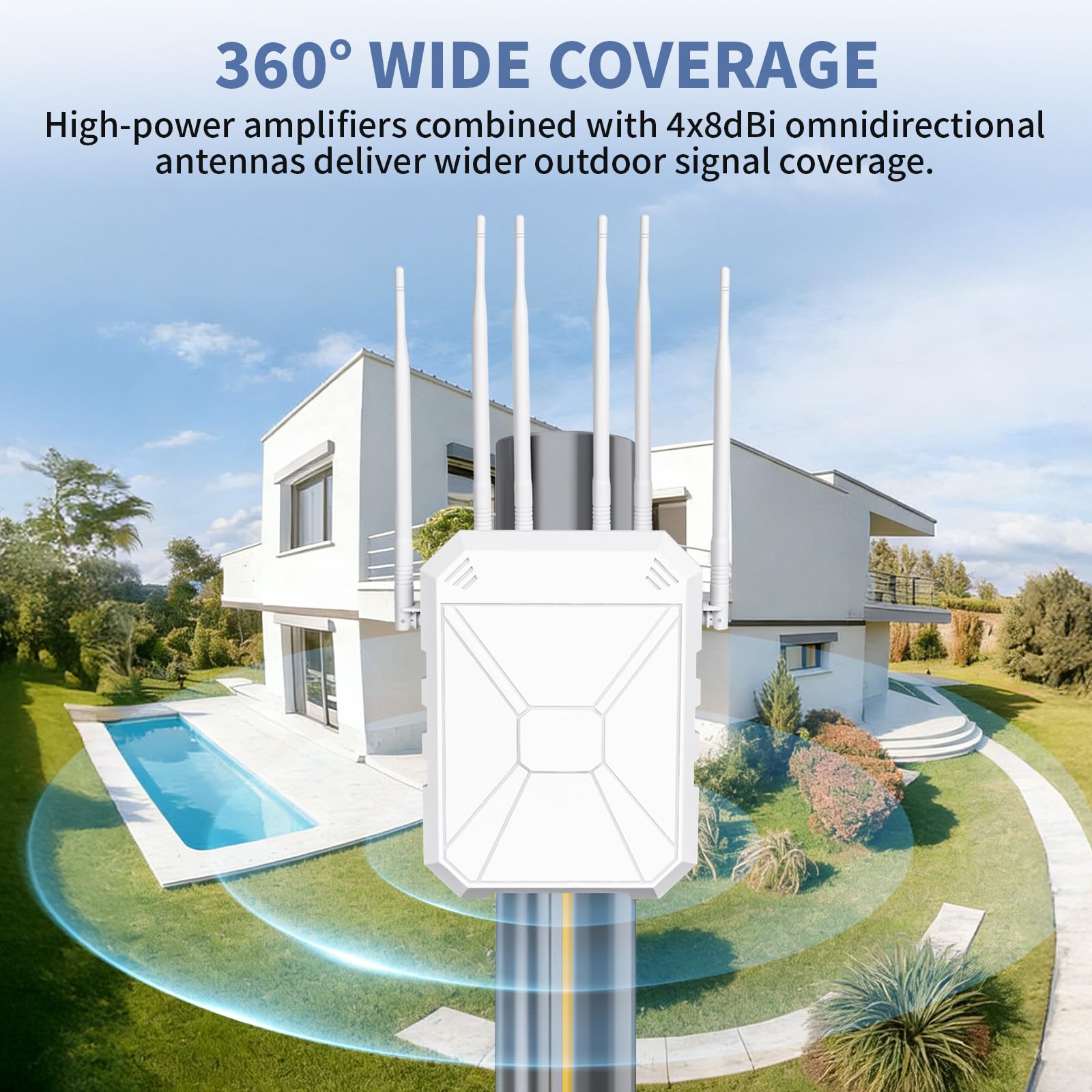Enhance Your Outdoor Life & Productivity: Enjoy seamless WiFi for work and play outdoors. Perfect for BBQ parties, poolside entertainment, backyard movies, farm monitoring, garage workshops, or RV trips. Experience faster streaming, lag-free gaming, and stable connections for all smart devices, making your outdoor life more convenient and enjoyable.