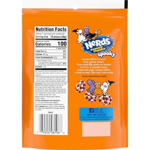 SWEET, TANGY AND NOW SPOOKY: This NERDS Spooky Gummy Clusters 8-ounce resealable stand up bag puts a Halloween twist on the delicious Gummy Clusters just in time for Trick or Treats