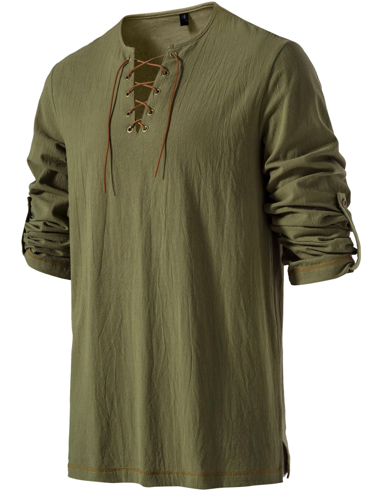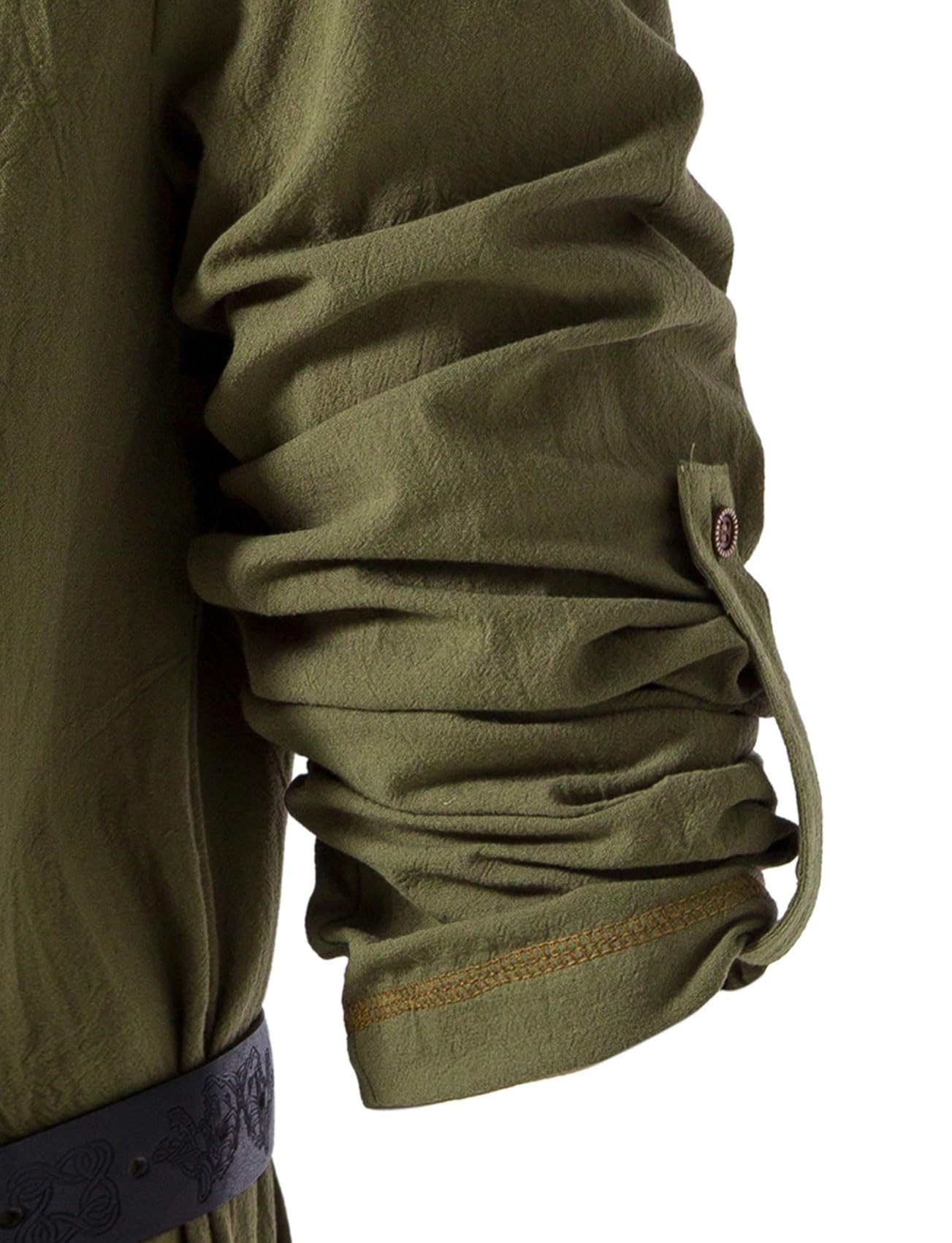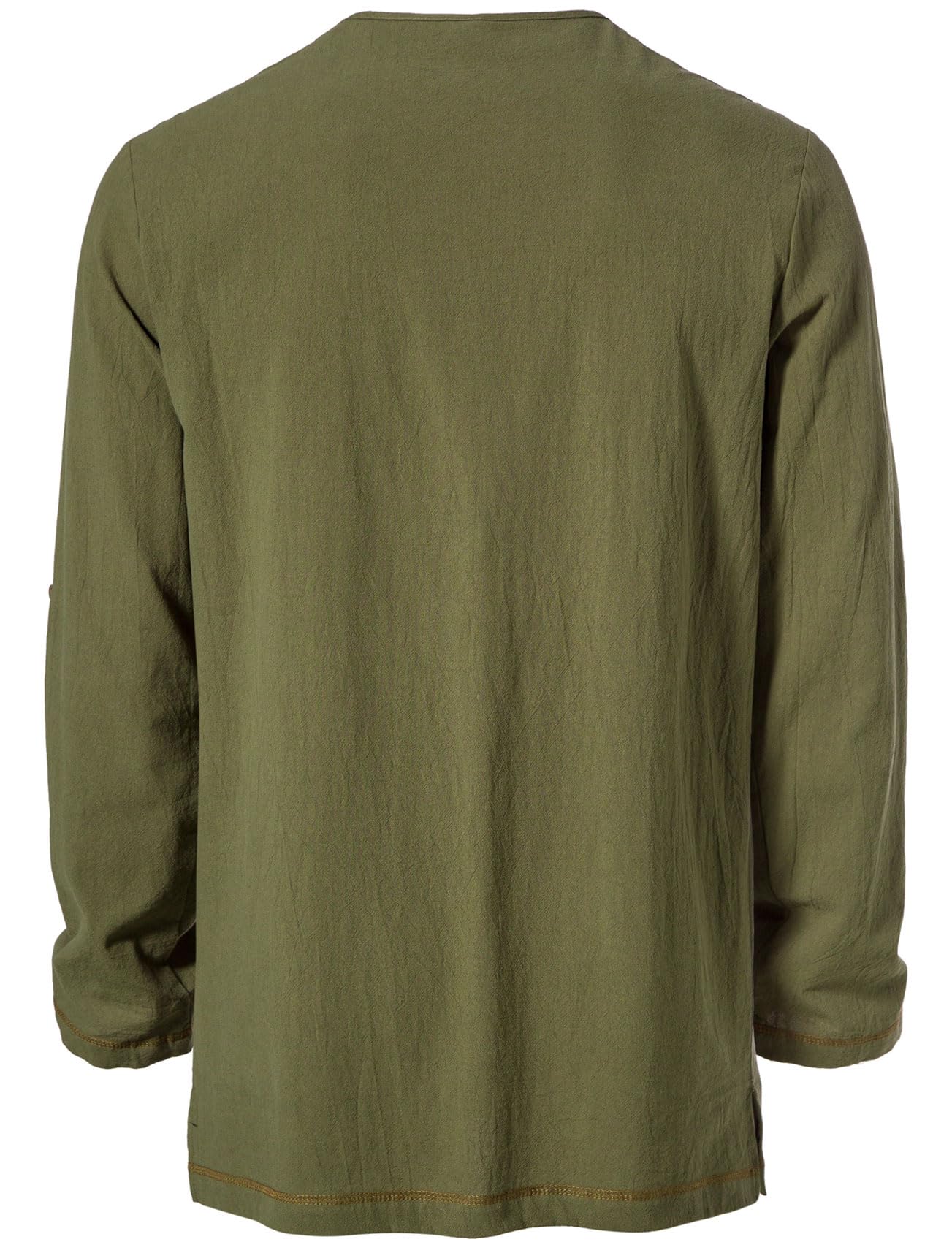 Design Concept: Mid-long tunic top / Contrast color drawstring design / Bronze buttonholes with retro buttons / Regular fit / V neck / Side slit / Long sleeve / Rolled sleeve