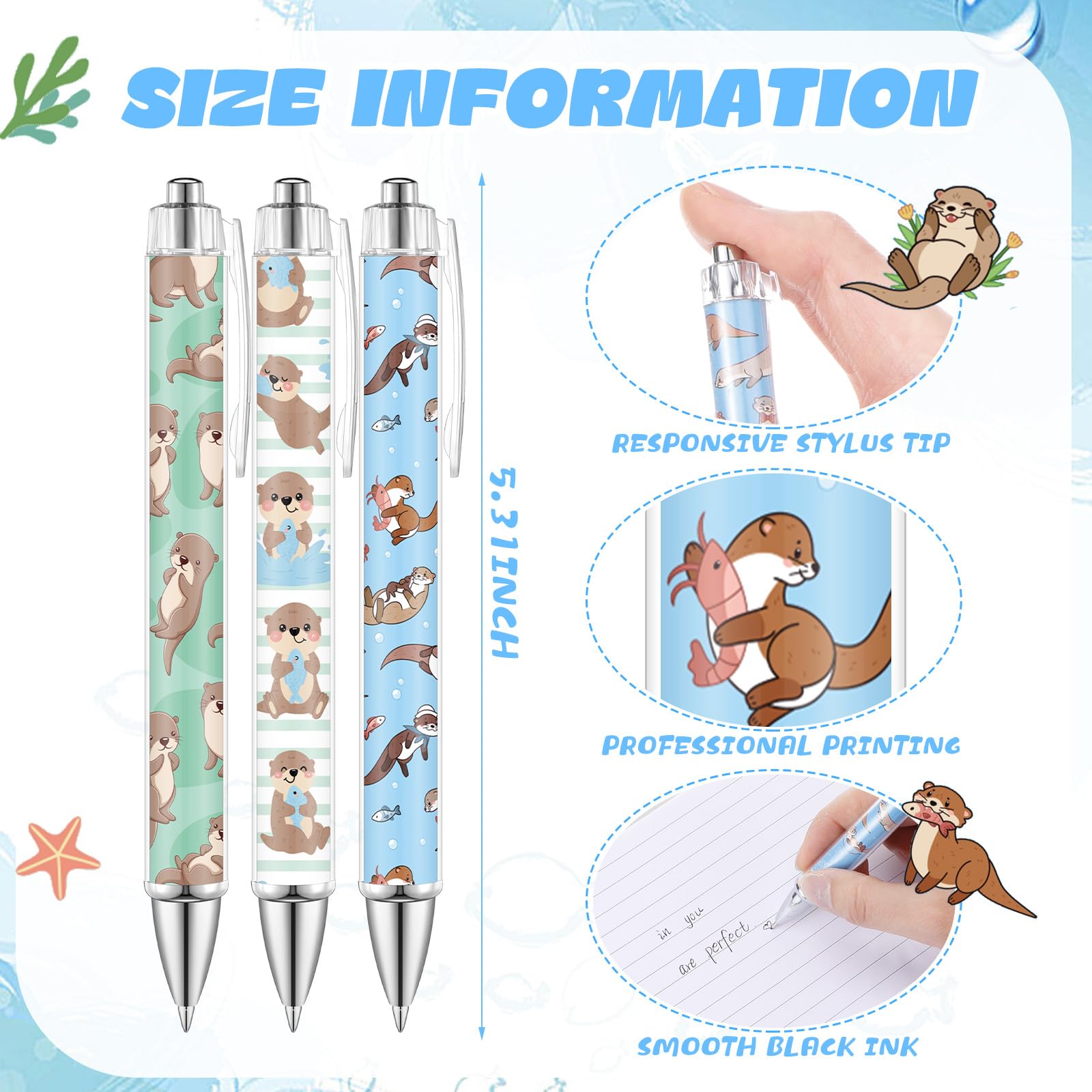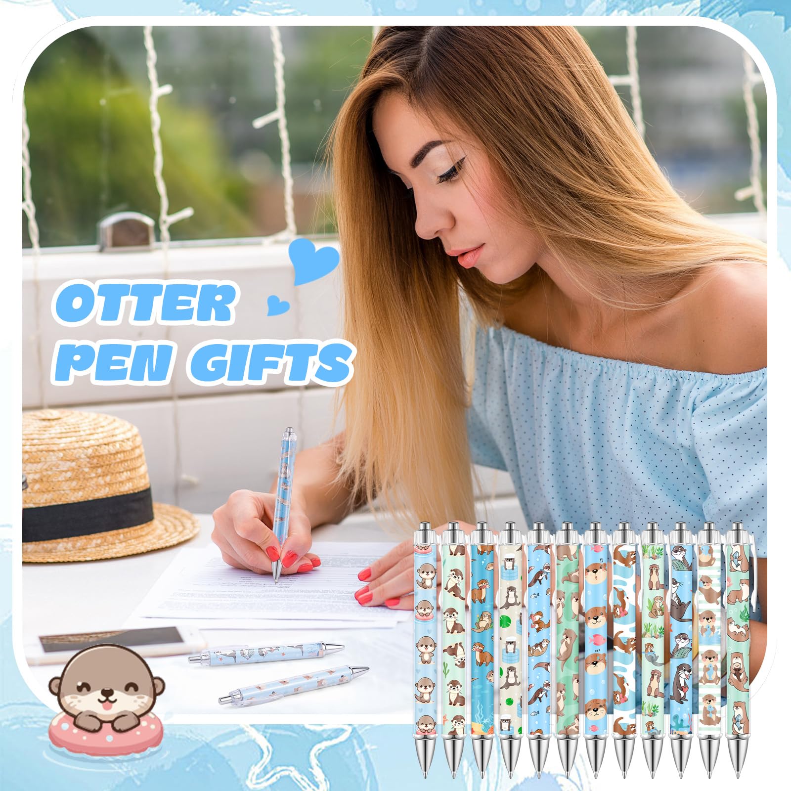 Otter Theme Gift: our pens designed with various cute otter elements, suitable as party gifts, party supplies, Christmas party, a nice gift for women, friends, colleagues, teachers, and more