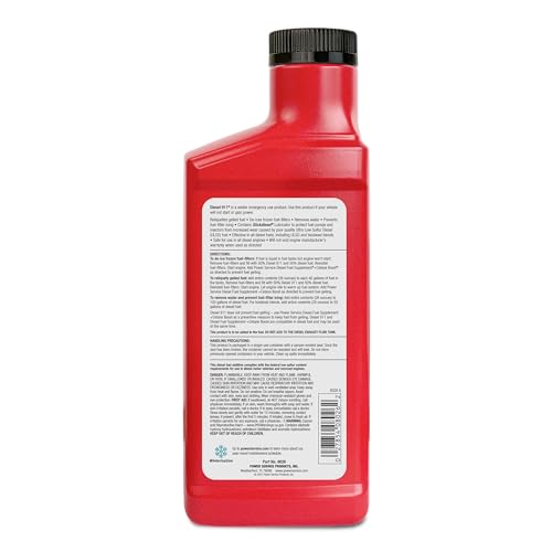Diesel 911 is a winter emergency use product. This Winter Rescue Formula reliquefies gelled fuel and de-ices frozen fuel-filters to restore the flow of diesel fuel to an engine. Diesel 911 does not prevent fuel gelling – use Diesel Fuel Supplement +Cetane Boost (in the white bottle) as a preventive measure to keep fuel from gelling. Diesel 911 and Diesel Fuel Supplement +Cetane Boost are compatible in diesel fuel and may be used at the same time.