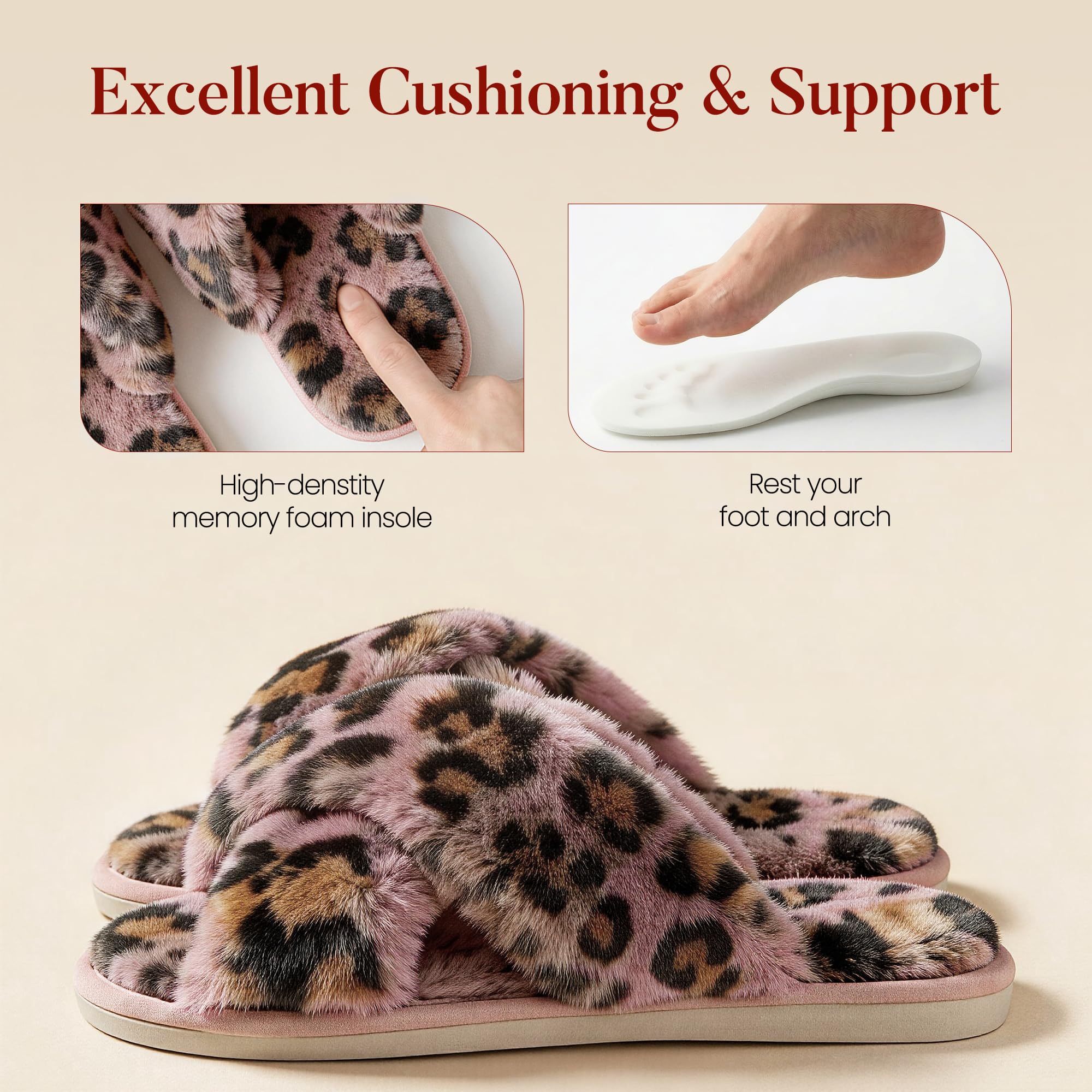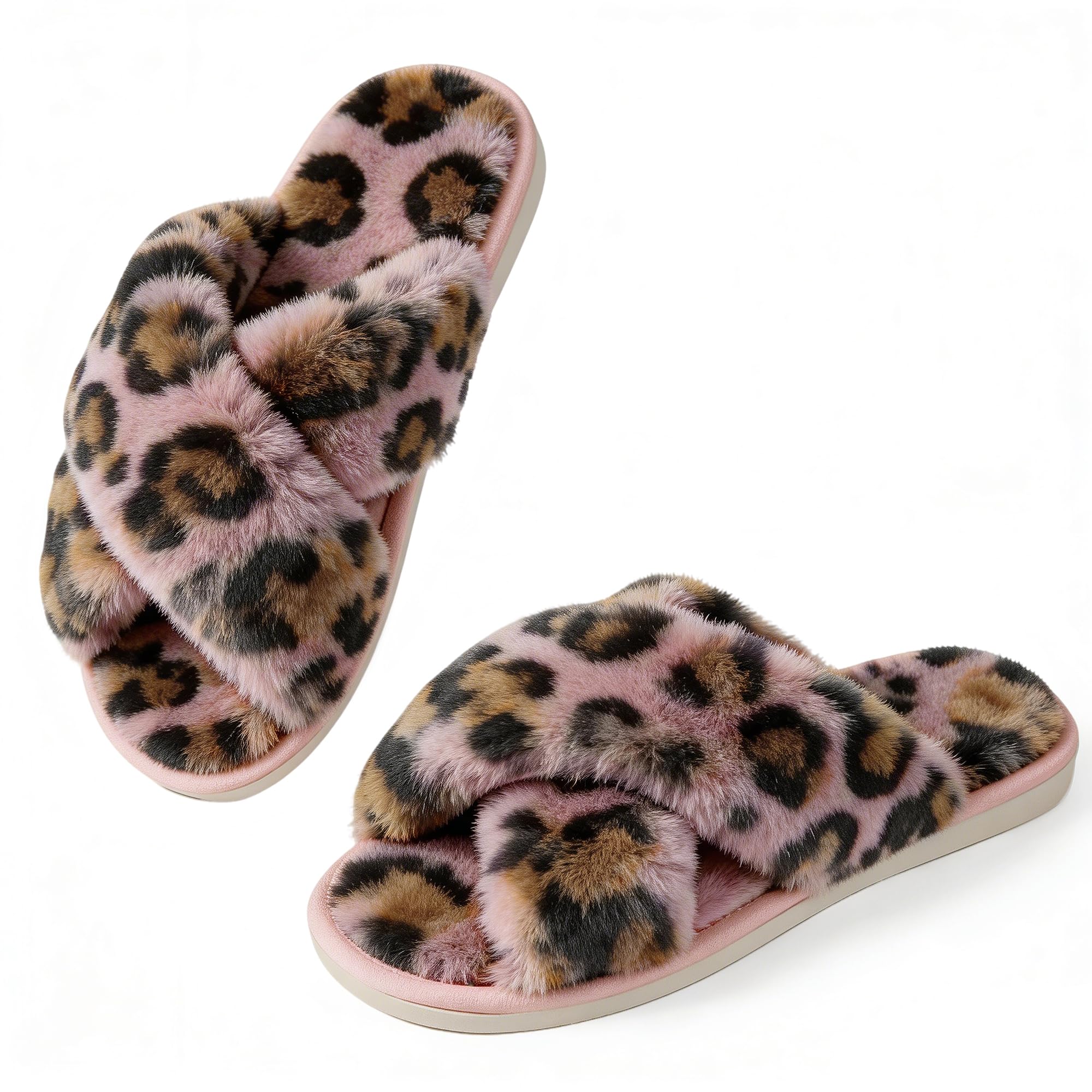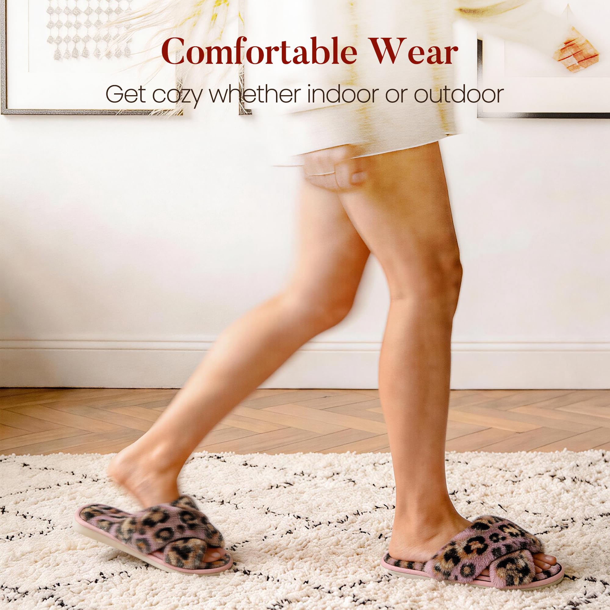 Chic Must-Have Slippers for Women: Ankis fuzzy slippers feature a trendy cross-band design that looks cute and stylish. The open-toe style makes them easy to slip on anytime. Soft plush faux fur keeps your feet cozy while staying breathable for all-day comfort at home