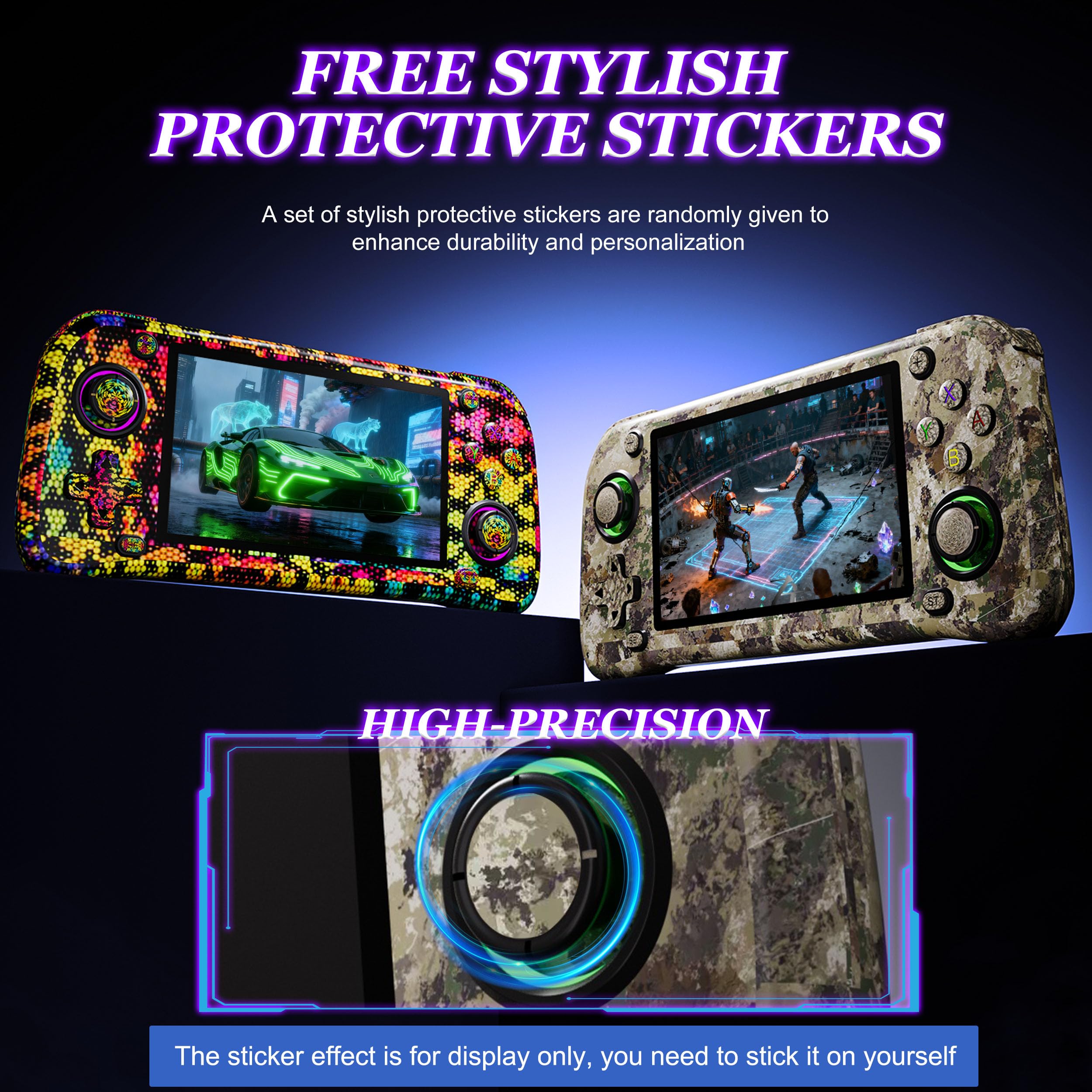 🎁 Free Random Skin Stickers & Ergonomic Controls: Personalize your console with included protection stickers. Features a responsive 3D joystick and tactile buttons for precise gameplay. Ready-to-gift for birthdays, holidays, or gaming enthusiasts.