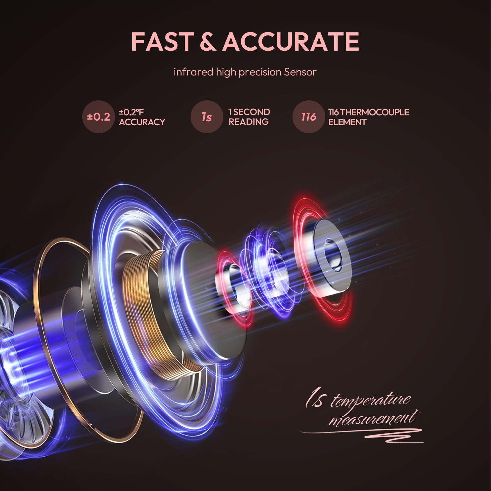 NO-CONTACT THERMOMETER: This touchless thermometer measures temperature without physical contact, providing a safer and more hygienic experience for all! Fast and accurate temperature readings within 1 second, providing precise measurements for quick and convenient use