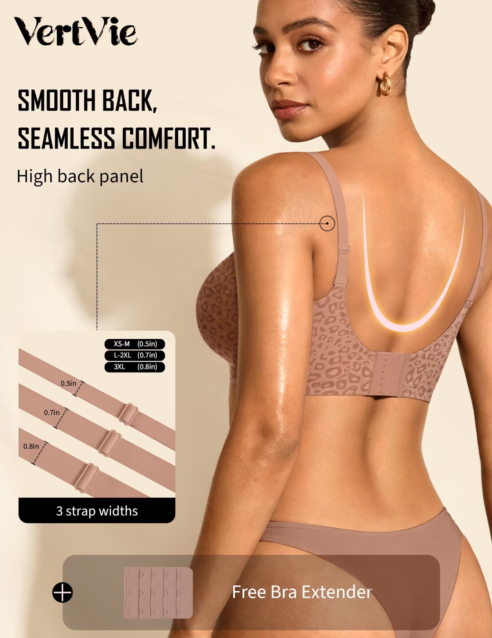 【Adjustable Shoulder Straps】 These supportive bras for women feature adjustable, non-slip straps and an extension buckle with 4 rows of hook-and-eye closures for a custom fit. They ensure comfort and stability, preventing sagging or riding up. The U-back design and wide side wings help hide underarm bulge and back fat, offering extra support