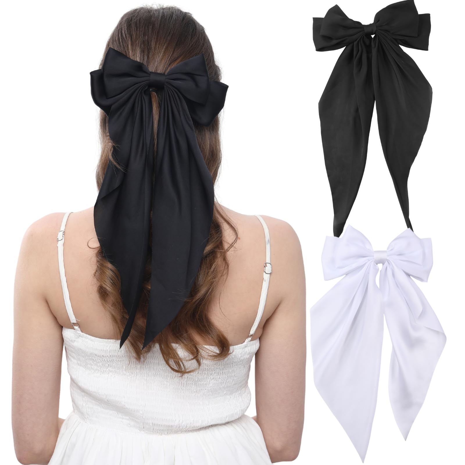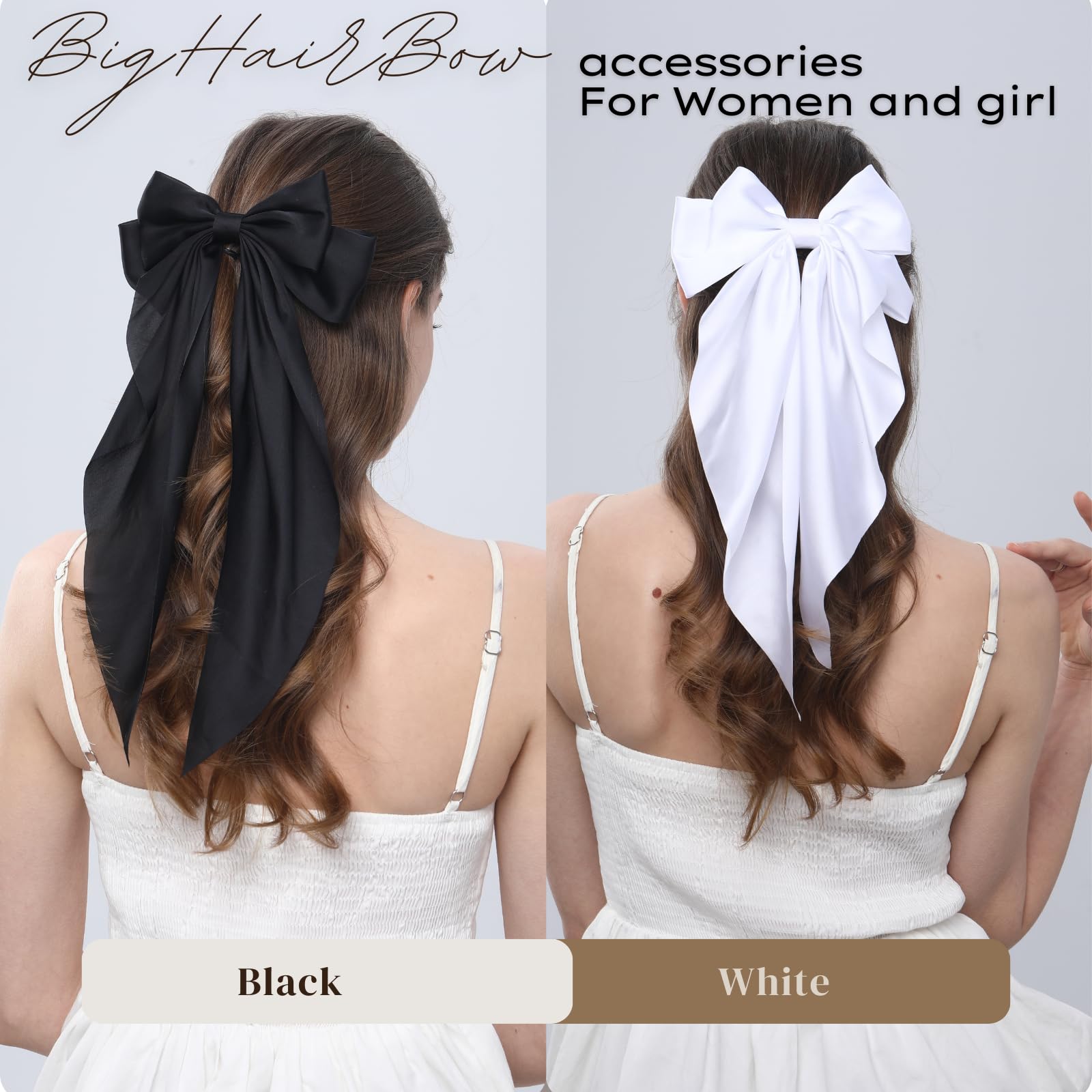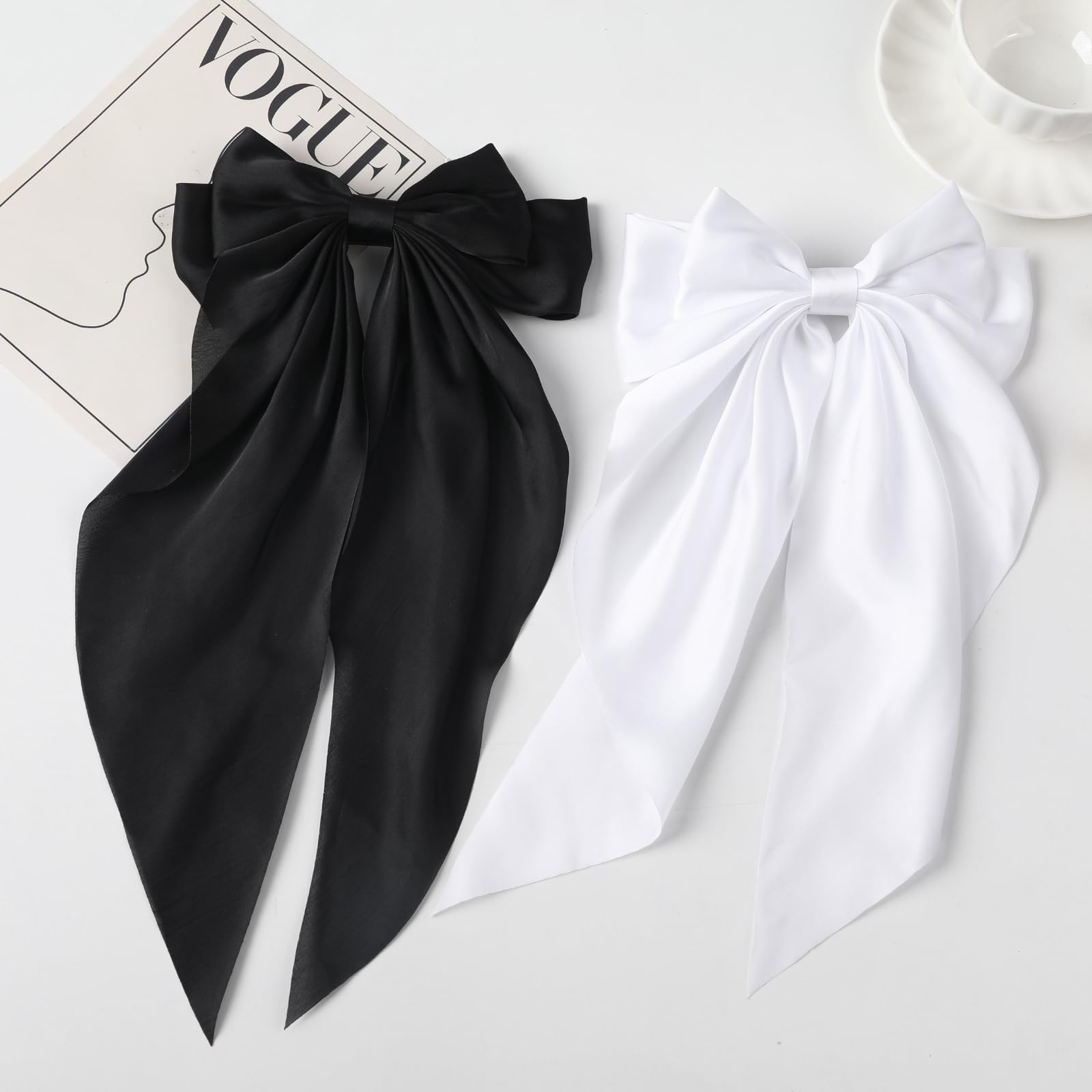 🎀 Oversized Statement Bows – Measuring 13.7" long with flowing ribbon tails, these big hair bow barrettes create a bold and stylish look, perfect for ponytails, half-up styles, or loose waves.