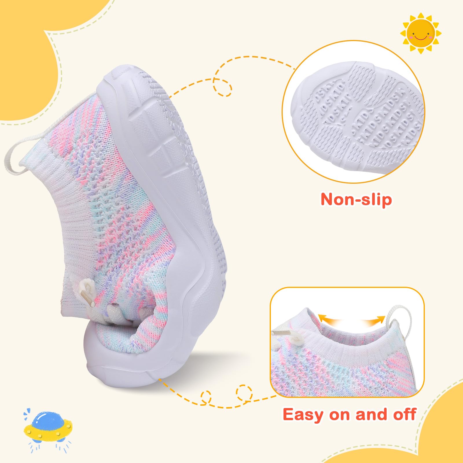 Breathable and Comfortable: The knit uppers of these toddler shoes give you good breathability and dry quickly. Keep kid's feet dry and comfortable even during exercise. Suitable for wear in any season