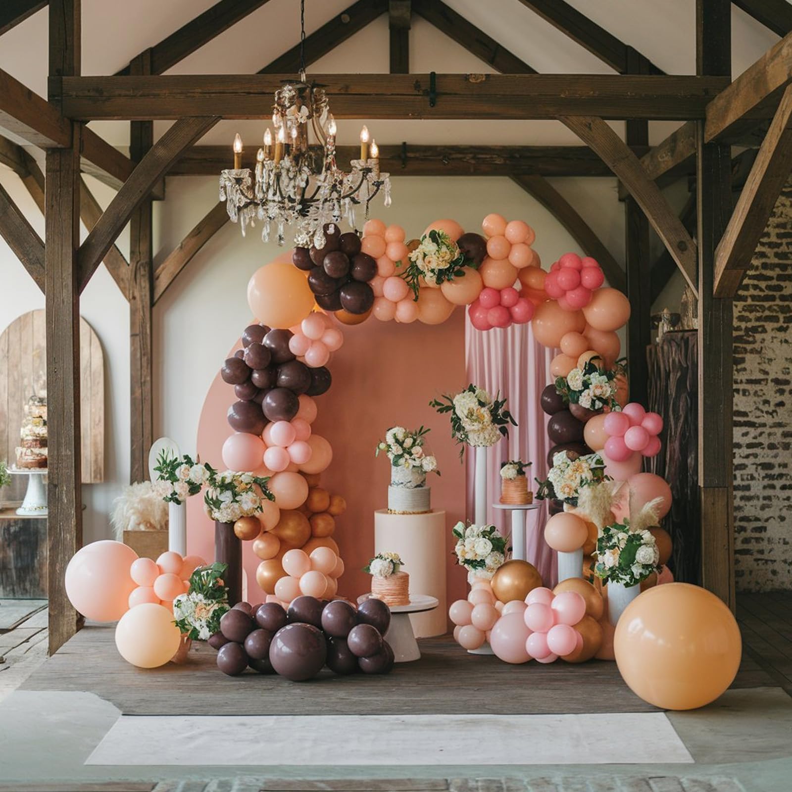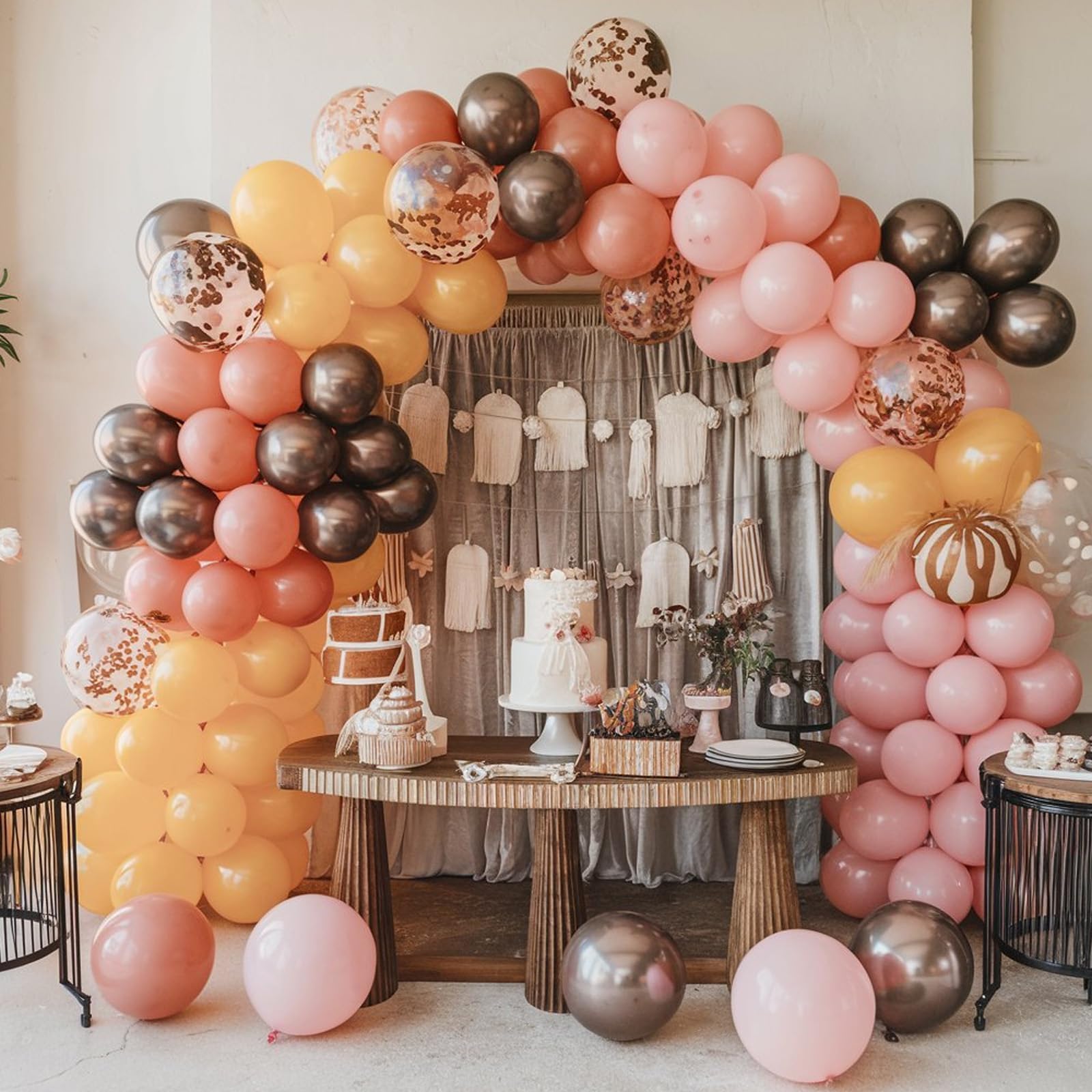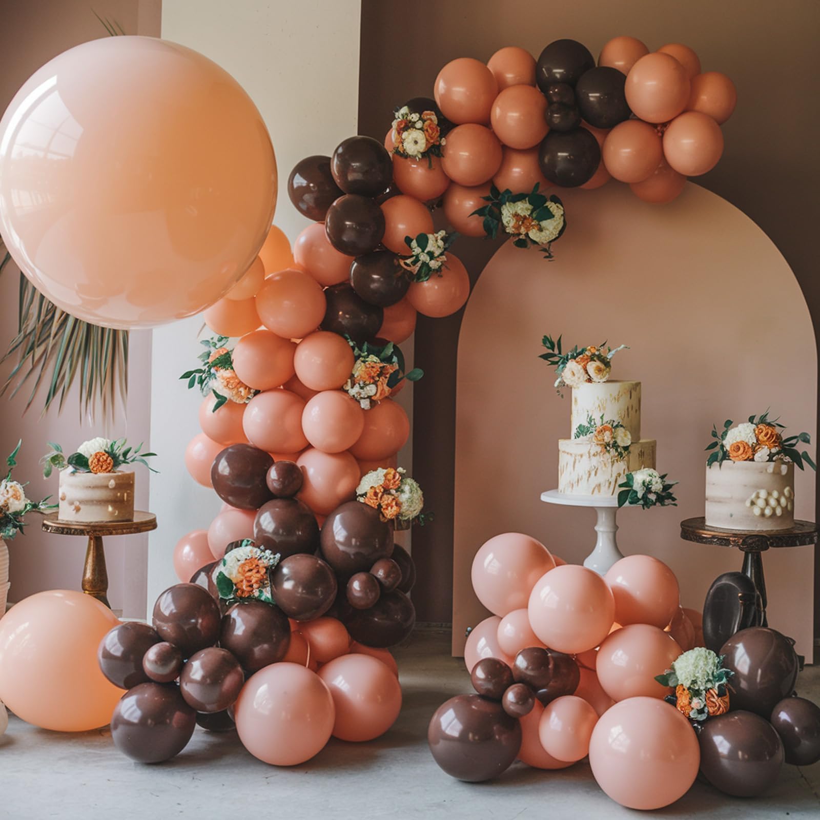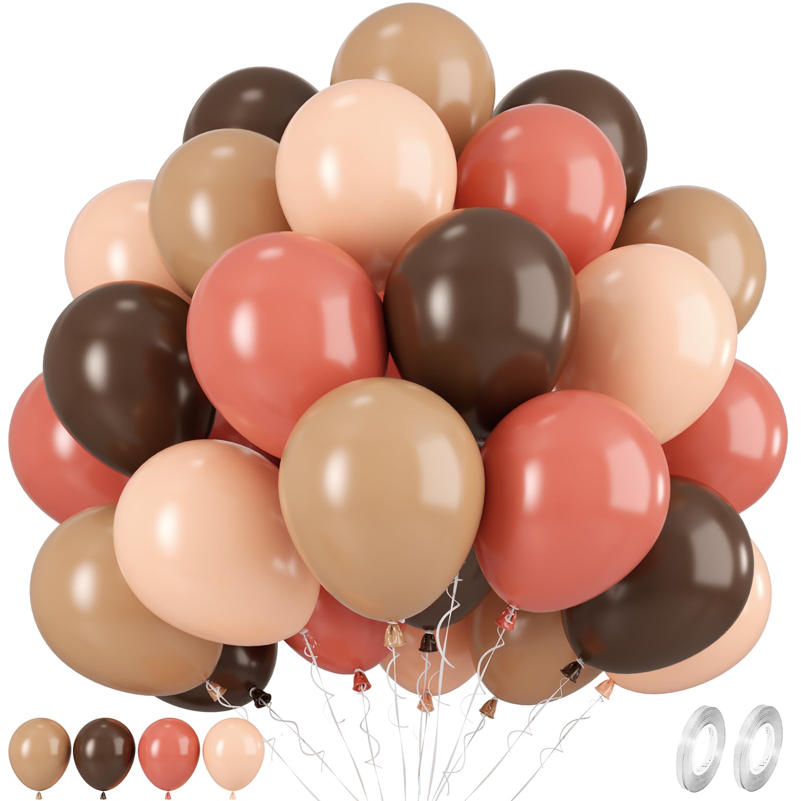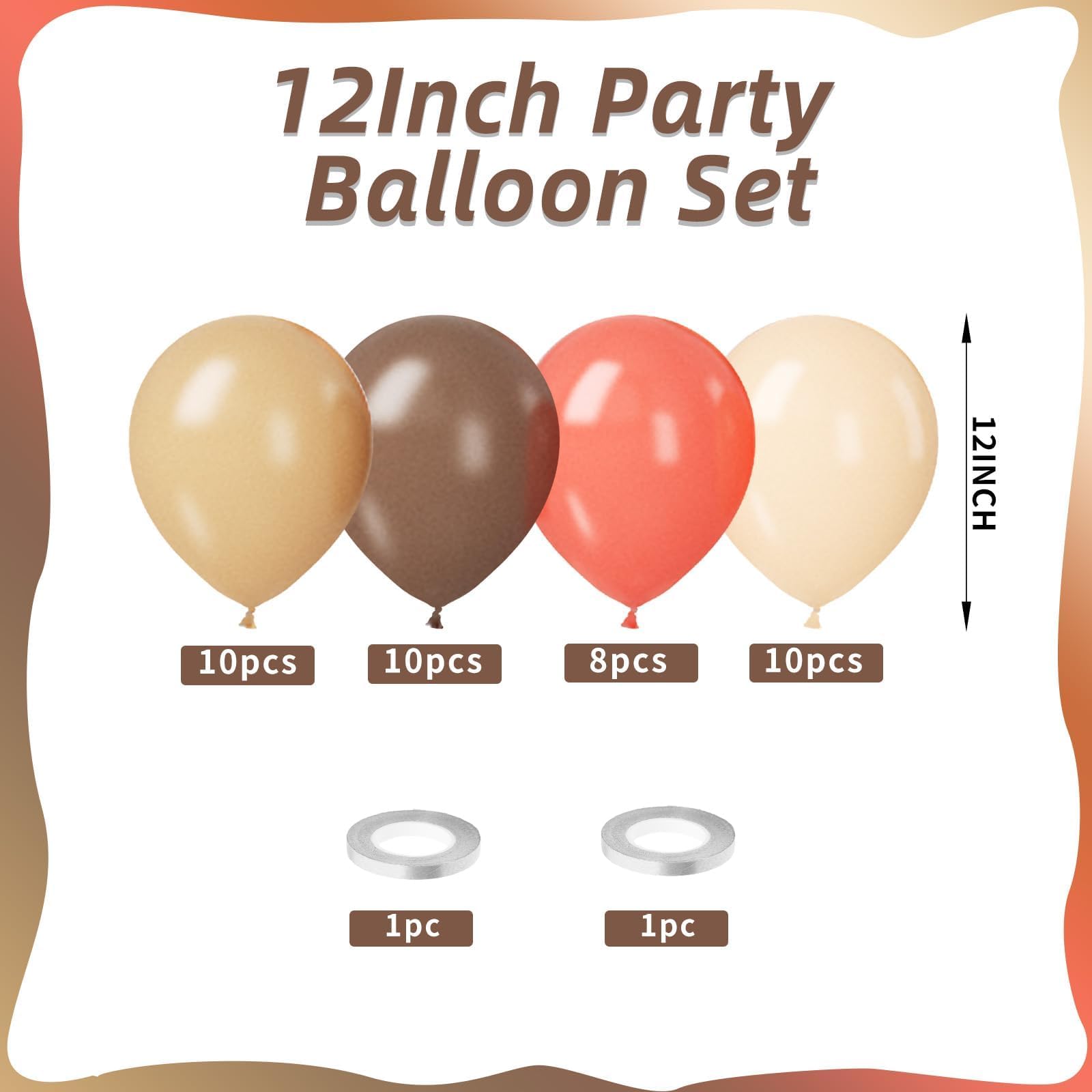 12-inch vintage pink-brown balloons: Package includes 18 vintage pink balloons, 10 coffee balloons, 10 brown balloons, 10 maca orange balloons, 2 balloon ribbons