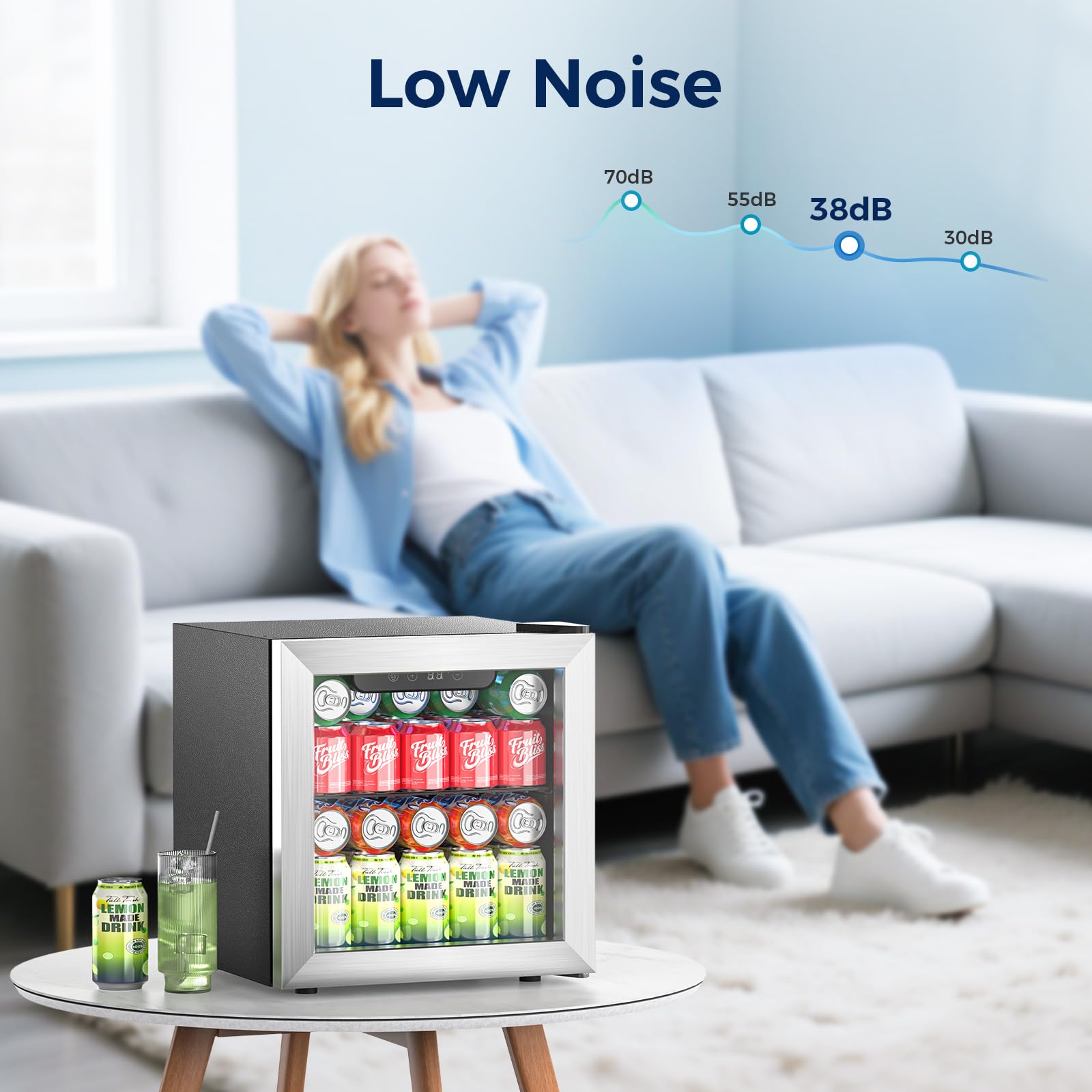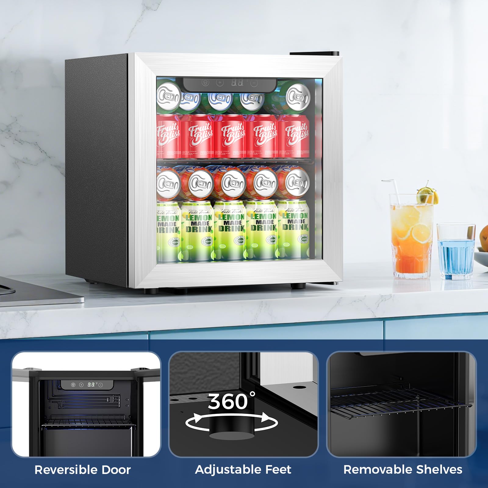 Compact Large Capacity: Beverage refrigerator engineered to maximize every inch, Featuring a 1.3cu. ft volume that can fit up to 50 standard cans! Wine fridge small thanks to its sturdy metal partition, you can organize your drinks more effectively and store wine bottles, beer cans, soda, water, juice, and more!