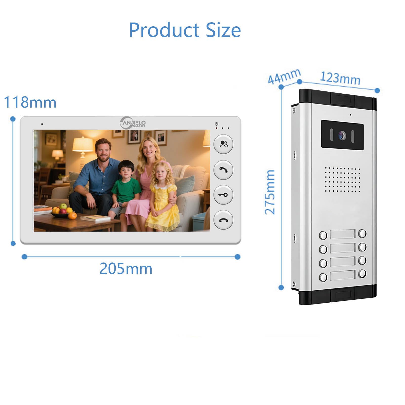 Wired Video Apartment Intercom System,2/3/4/5/6/8/10/12 Units 7 inch Monitor Video Door Phone Kit,Indoor Outdoor Video Doorbell,2 Way Audio for Home Camera Sensor:1.0MP,1/4"CMOS,3.6MM Lens View Angle:90 Degree Rainproof & Night vision:IP 55& 5M night vision Model size:275* 125* 45mm Material:Aluminum alloy Power supply:Supplied from indoor monitor Operation temperature:-30°-60° Installation:flush-mounted Monitor:7 inch touch key Size:205mm*108mm*22mm Resoulution:800*480 Function:2 way intercom/monitor/unlock/mute mode Power supply:DC 15V 1.2A Material:Glass panel Installation:Surface Mount Wire:4 wire cable