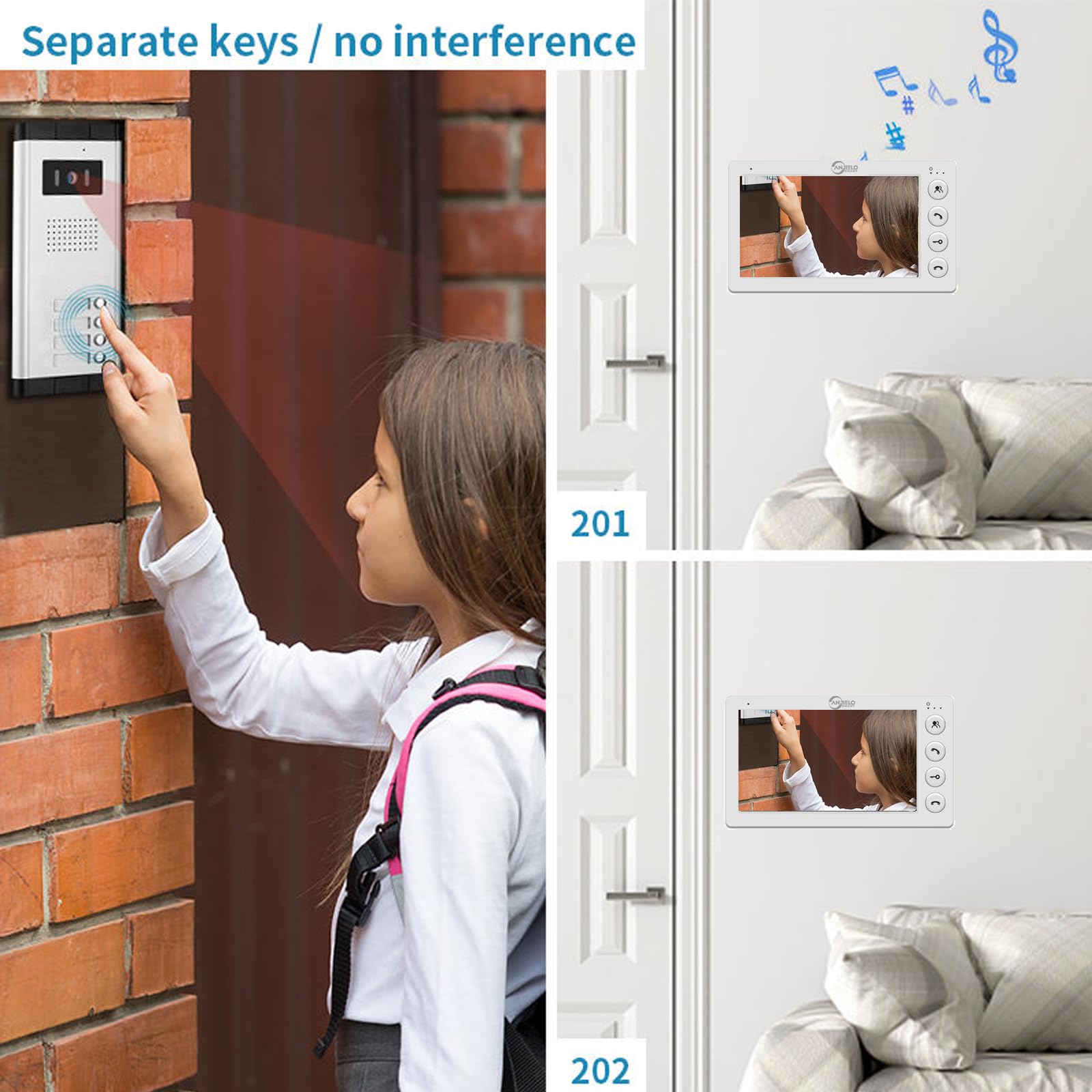 2/3/4/5/6/8/10/12 UNIT FAMILY DESIGN: 1 outdoor camera and 2/3/4/5/6/8/10/12 indoor screens for visual intercom doorbell system, supports 2/3/4/5/6/8/10/12 occupants in one building. Individual monitors without interfering with each other