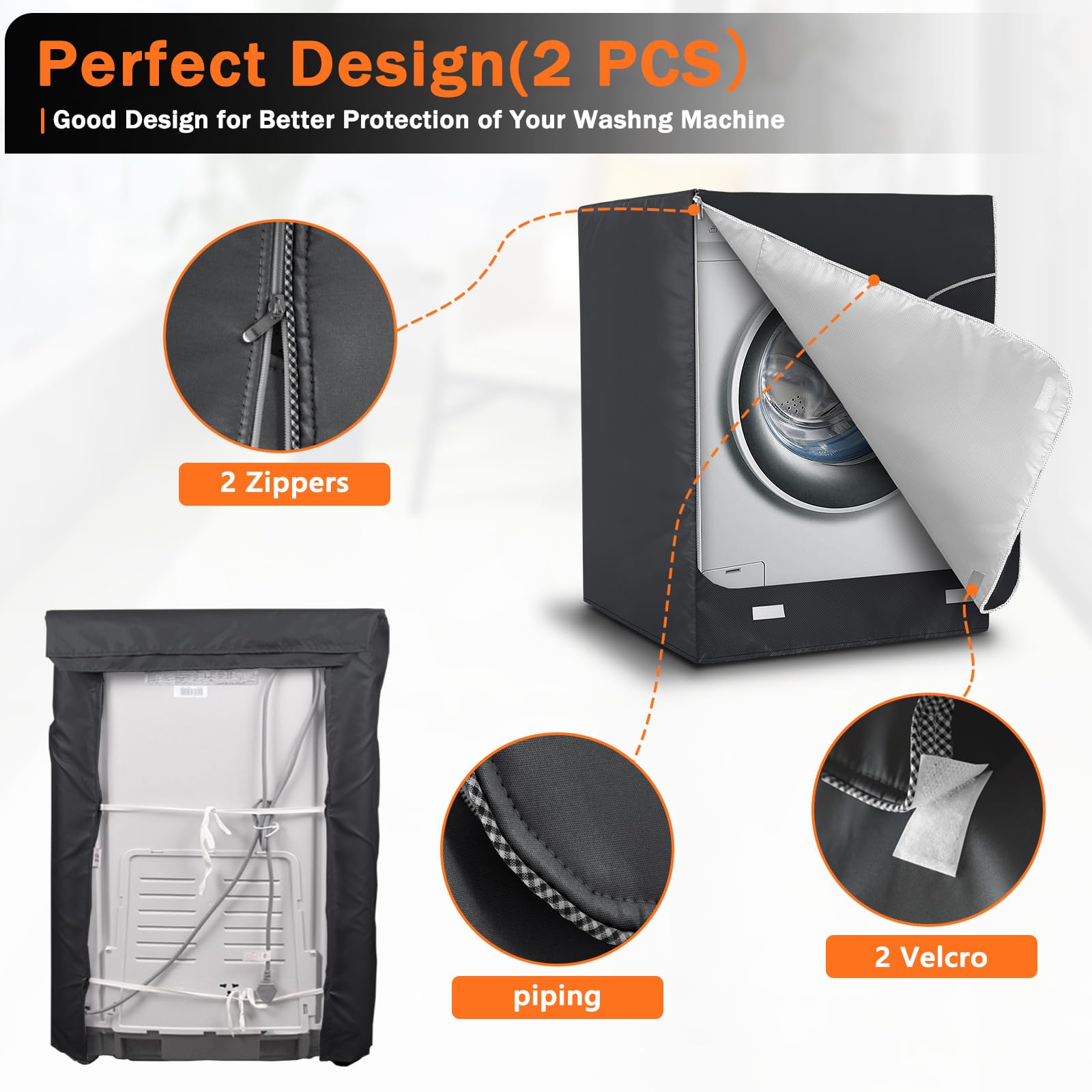【Easy to Use】: Front load washer/dryer cover designed with zipper and velcro that lets you open the machine without taking away the cover, very simply and convenient.