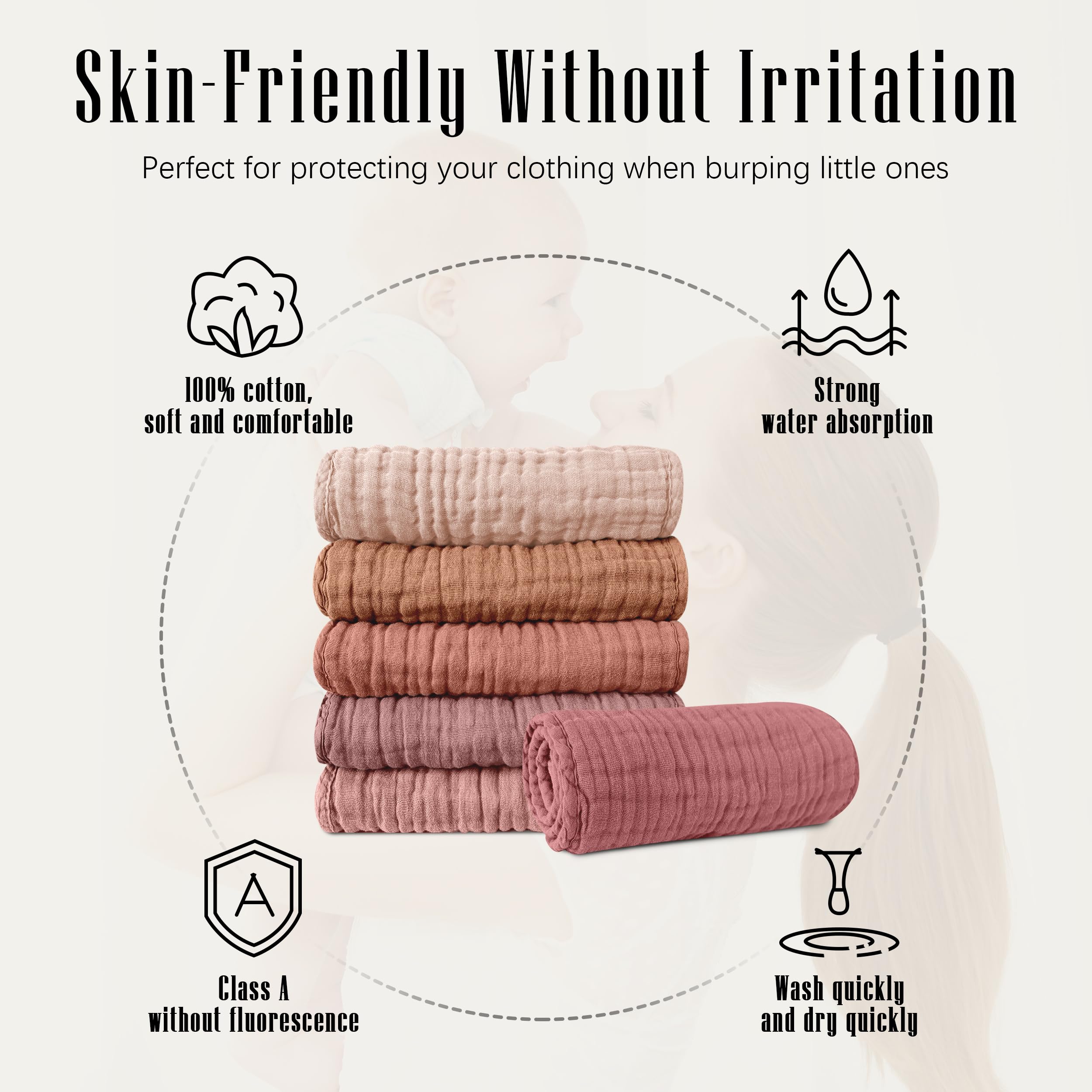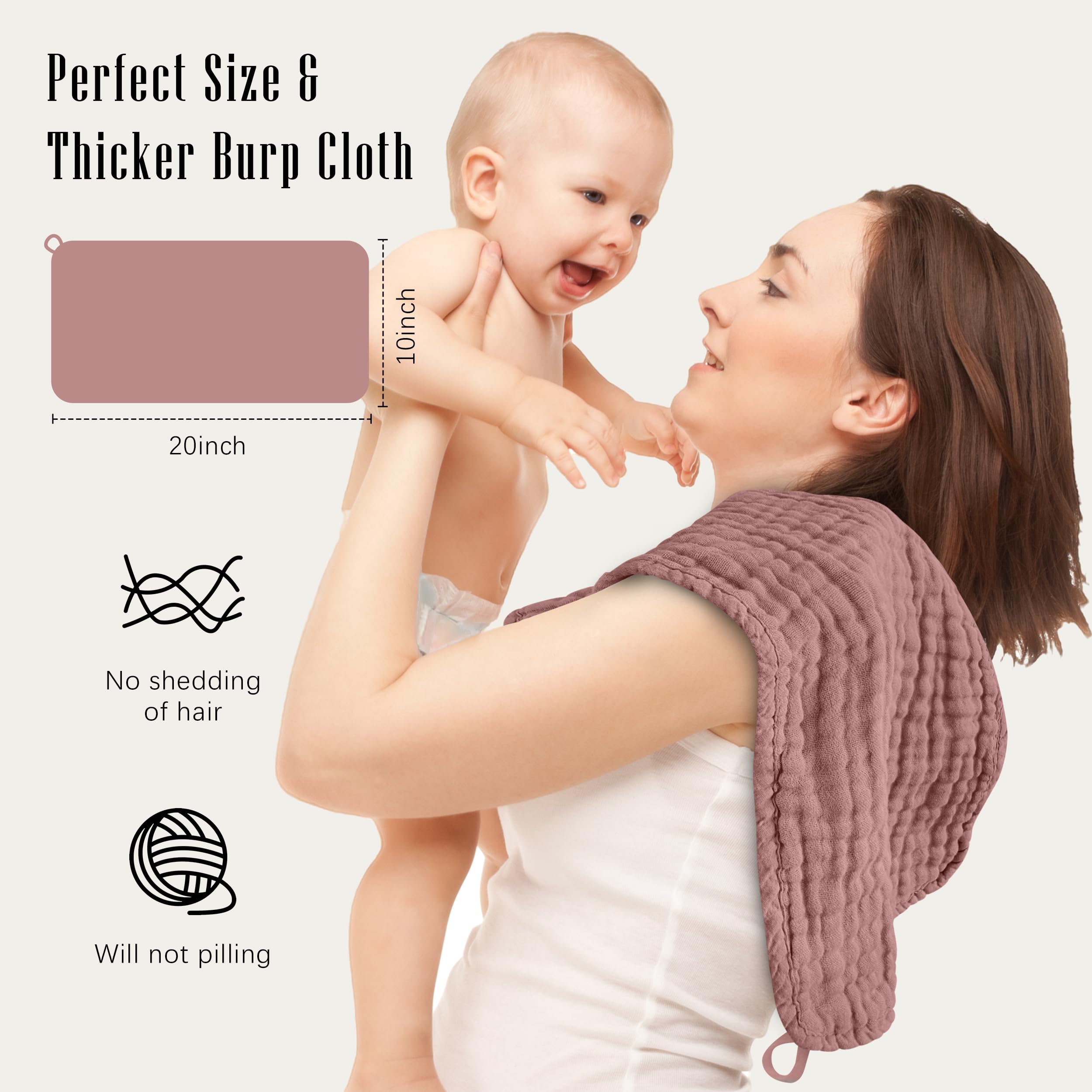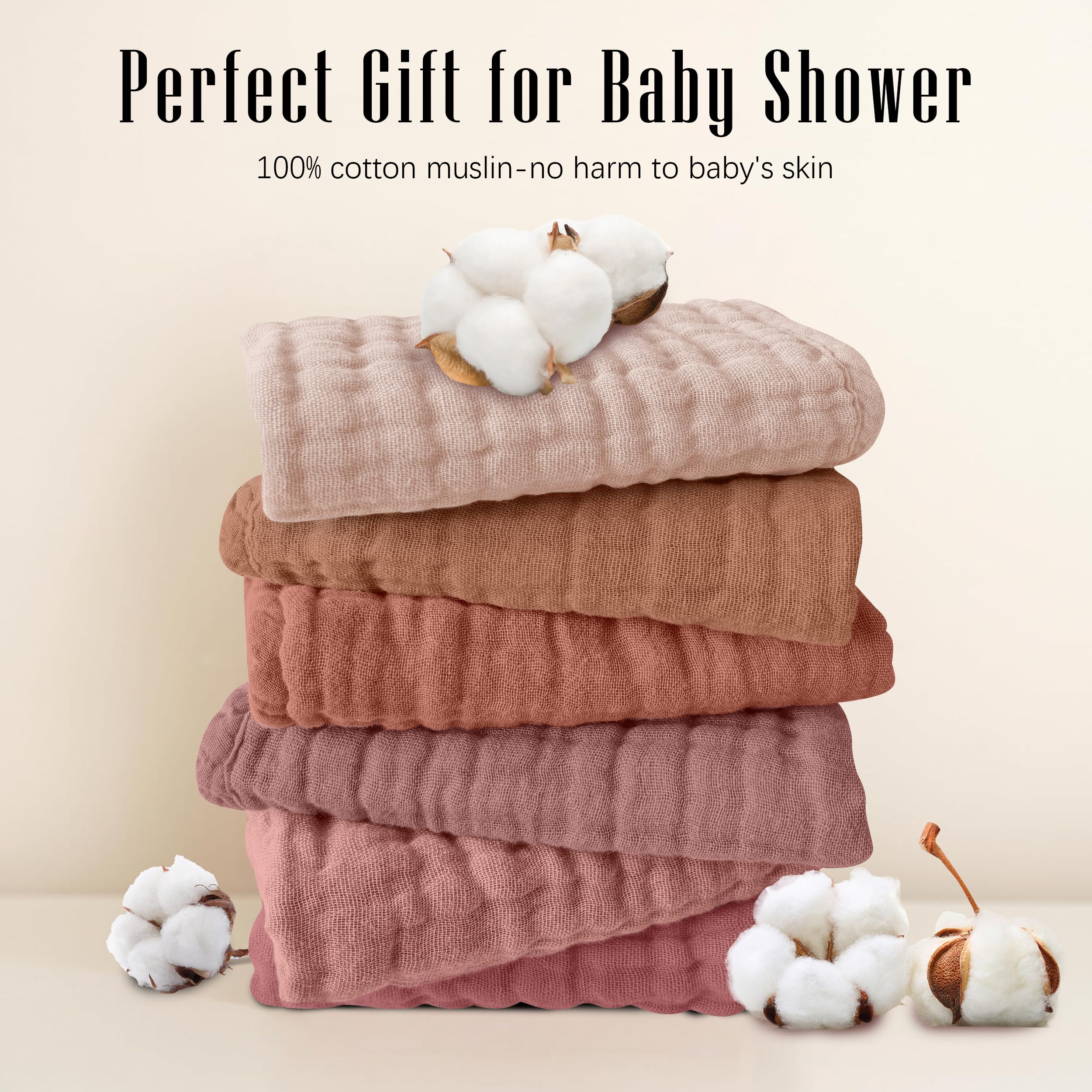 SWEET DOLPHIN 12 Pack Muslin Burp Cloths, 20" X10", Muted Terracotta